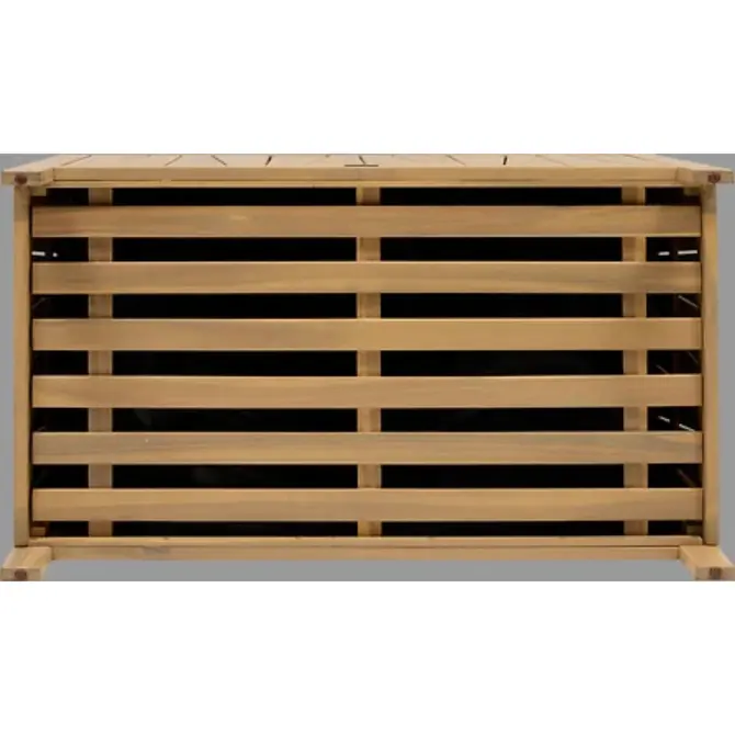 Mobilność i detale: Dzięki dyskretnym uchwytom skrzynię można łatwo przesuwać w zależności od potrzeb, a jej graficzna struktura listew stanowi ozdobę samą w sobie.
