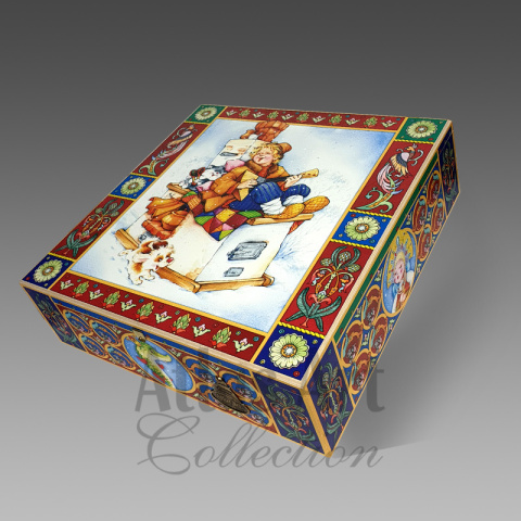 Wszystkie ozdoby są bezpiecznie i stylowo umieszczone w drewnianej skrzynce, której elegancka ilustracja nawiązuje do tematyki kolekcji. Wnętrze skrzynki wypełnia specjalna gąbka, która zapewnia pełne bezpieczeństwo podczas przechowywania i transportu. Ta luksusowa prezencja czyni zestaw idealnym, gotowym prezentem.