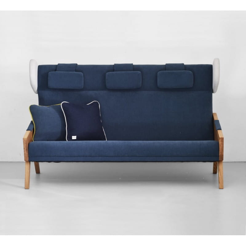 Trzy-osobowa sofa Liu to oryginalna nierozkładana sofa typu uszak, z charakterystycznym, wyodrębnionym poziomym przeszyciem zagłówkiem. Konstrukcja sofy została tak zaprojektowana, by idealnie dopasować się do ułożenia naszego ciała zapewniając wygodę i ukojenie. Czworokątne, drewniane boki sofy w których frezowane nogi to detale ukazujące kunszt ręcznej, precyzyjnej pracy. Tapicerowane podłokietniki stanowią miękkie podparcie dla rąk, czyniąc monolityczny bok bardziej zmysłowym, a odpowiednio dobrany kąt pomiędzy siedziskiem a wysokim oparciem zapewnia komfort użytkowani. Kolekcja Liu to również fotel na stałej, obrotowej lub bujanej podstawie.