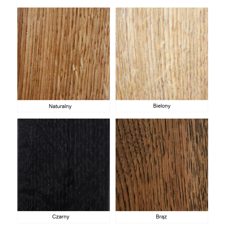 dąb w odcieniu naturalnym, dąb w odcieniu palisander, dąb odcień czarny, stal ;