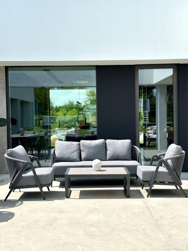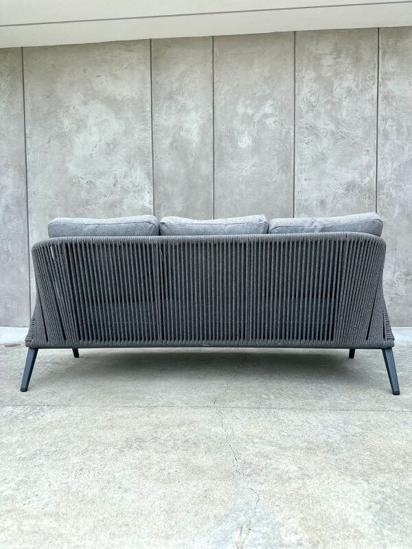 Konstrukcja sofy została wykonana z solidnego aluminium – lekkiego, odpornego na korozję i warunki atmosferyczne. Dzięki temu mebel doskonale nadaje się do użytku zewnętrznego przez cały sezon. -