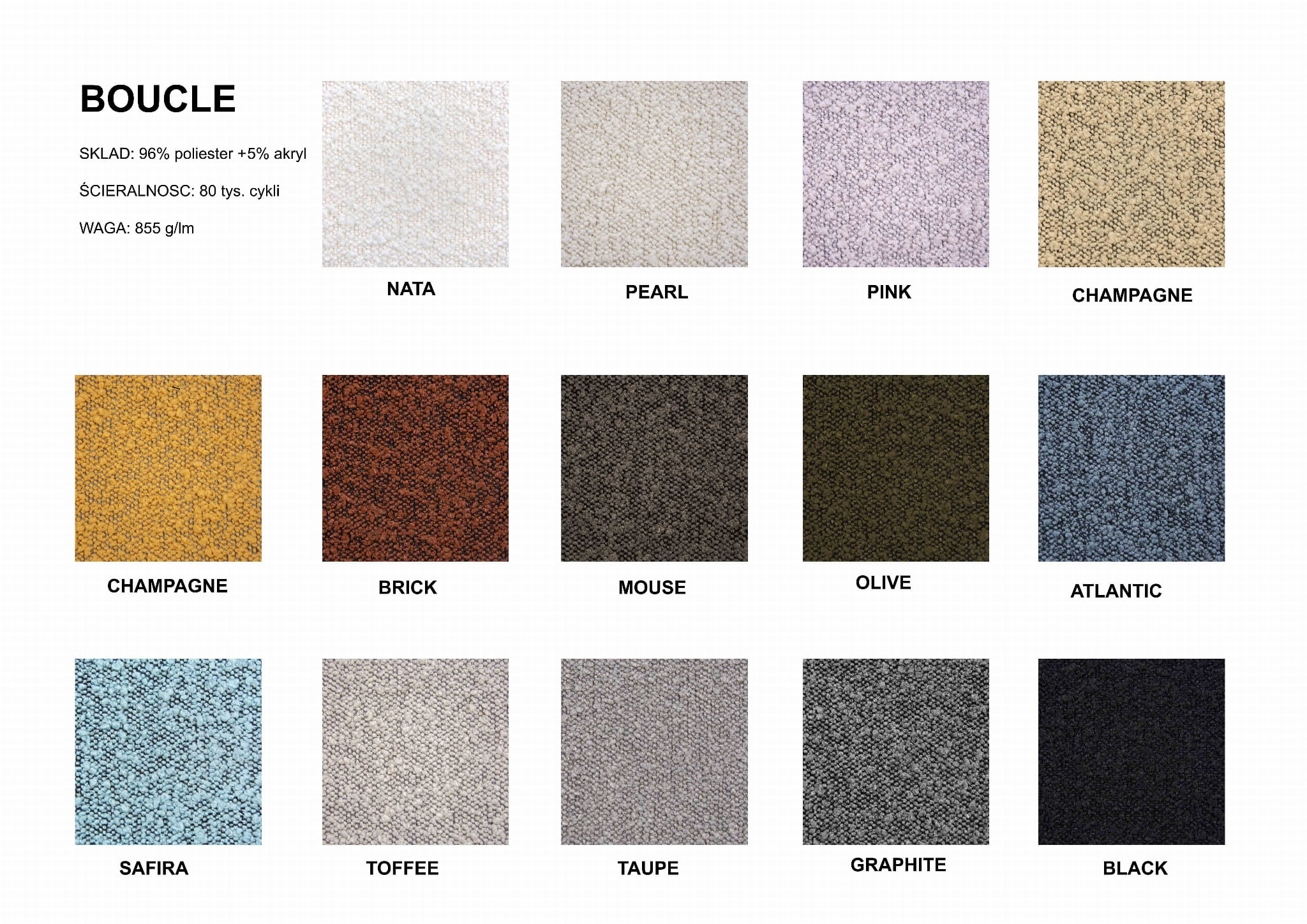 Wykończenie tapicerskie: Grupa I : TKANINA: SZENILA Grupa II: TKANINY: PASTEL VELVET, VELVET, WOOL COLLECTION, COTTON + LINEN