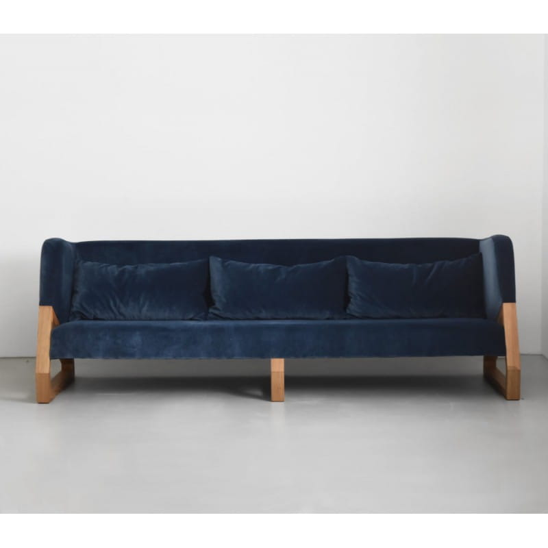 ZGRAB to nowoczesna, elegancka i komfortowa sofa do domowego salonu, poczekalni, lobby czy restauracji. Ten designerski mebel jest połączeniem opływowej miękkiej formy tapicerowanej z dębowymi olejowanymi nogami w kształcie pięciokątów. Oba elementy płynnie łącza się ze sobą odsłaniając fragment miękkiego, wygodnego siedziska. Jej nonszalancki charakter sprawia, że doskonale odnajduje się w eleganckich wnętrzach, którym nie brakuje polotu i awangardy. Sofa prezentuje się nietuzinkowo i wygląda równie elegancko w zestawie z fotelem ZGRAB. Gwarantuje wygodę i odpoczynek, jest wykonywana na zamówienie w małych seriach w pracowni MELYO na Podkarpaciu. Sofa dostępna jest w trzech rozmiarach długości 125, 185 i 225 cm.