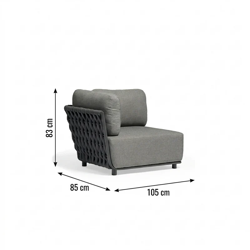 Sofa narożna lewa Serano Lounge w odcieniu głębokiej szarości to moduł zaprojektowany dla osób, które cenią czystą formę i bezkompromisową trwałość. Stanowi kluczowy element składowy luksusowych narożników, ale dzięki dopracowanym detalom, doskonale odnajduje się również jako samodzielna szezlongowa leżanka. Szary kolor plecionki nadaje bryle surowej elegancji, która idealnie komponuje się z nowoczesnymi fasadami i betonem architektonicznym.