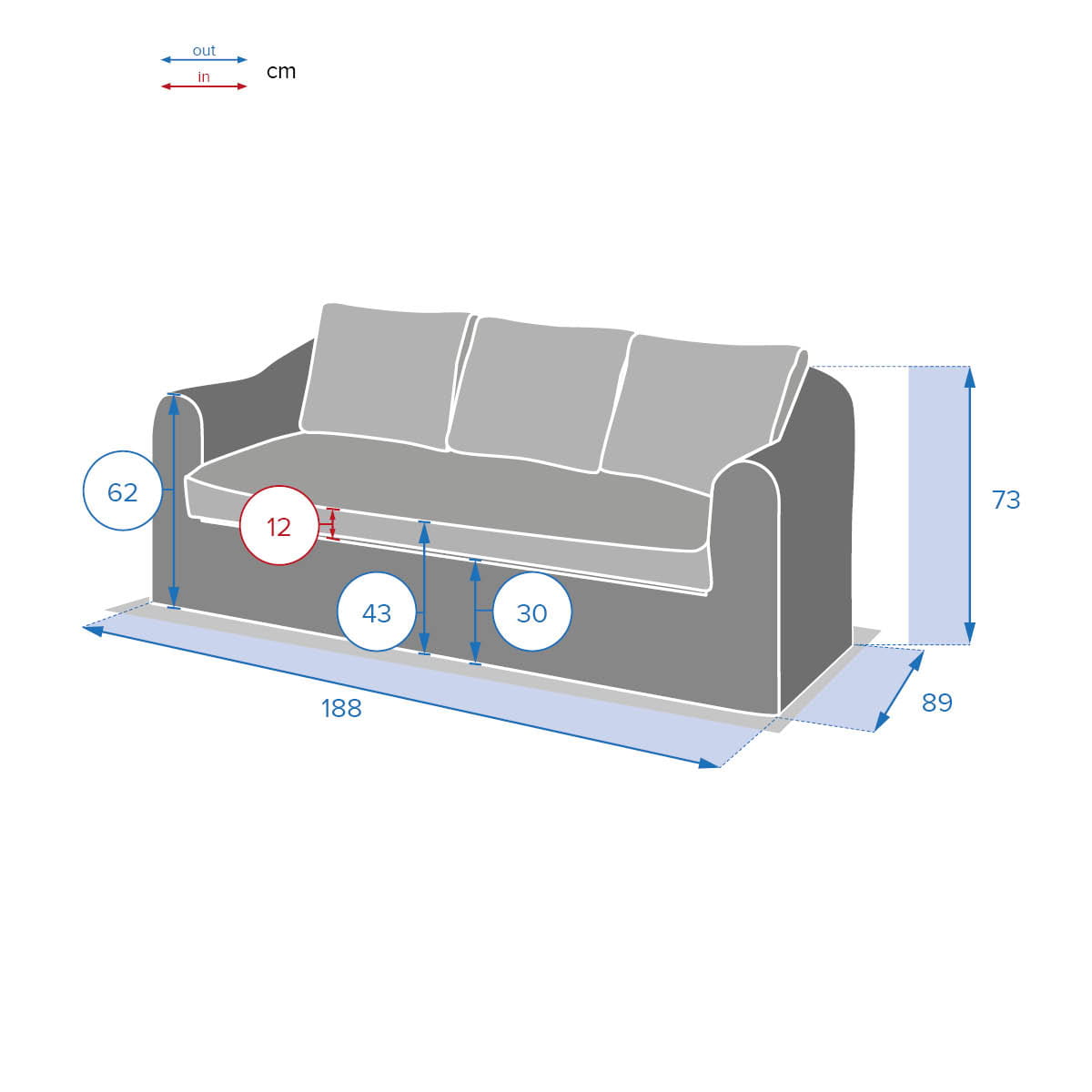 Poduszki siedziska (cm): 152 x 72 x 12