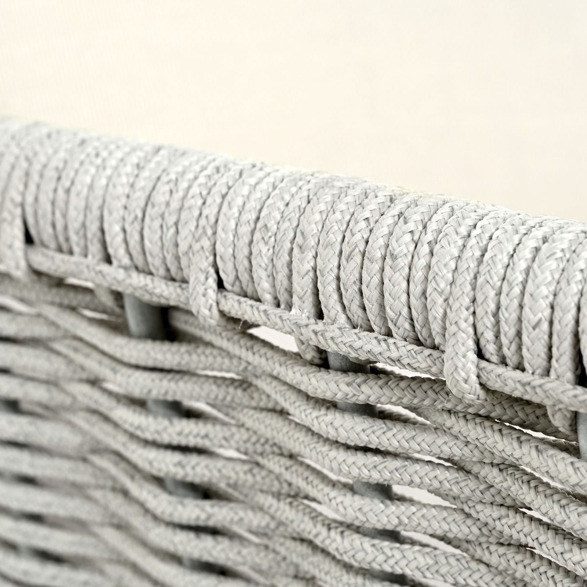 Artystyczny splot sznurka: Stelaż opleciony wytrzymałym, szarym sznurkiem tworzy ażurową strukturę, która nadaje meblowi wizualnej lekkości. To detal, który idealnie wpisuje się w style marynistyczne, eklektyczne oraz prestiżowy styl Hampton.