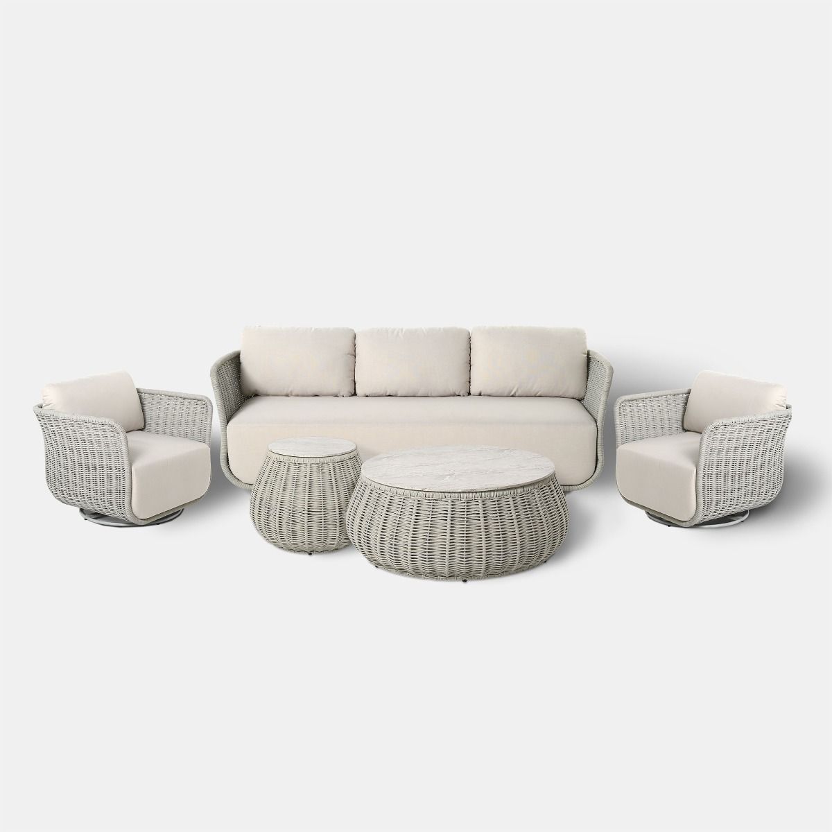Odporność All-Weather: Powłoka proszkowa wypalana w temperaturze do 210°C gwarantuje odporność na ścieranie i zmienne warunki atmosferyczne. Sofa nie rdzewieje i nie wymaga żmudnej konserwacji.