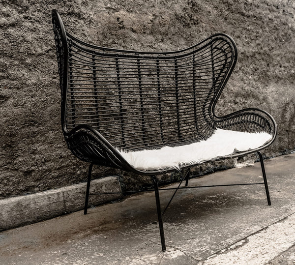 Sofa rattanowa 2 osobowa Isla w kolorze czarnym to świetna propozycja na naturalną aranżację na tarasie czy w ogrodzie. Sofa tworzy nowoczesny klimat i harmonię z letnią aurą i roślinnością dając atmosferę prawdziwego relaksu na świeżym powietrzu. Co więcej sofa idealnie sprawdzi się również we wnętrzach, szczególnie w stylu boho.