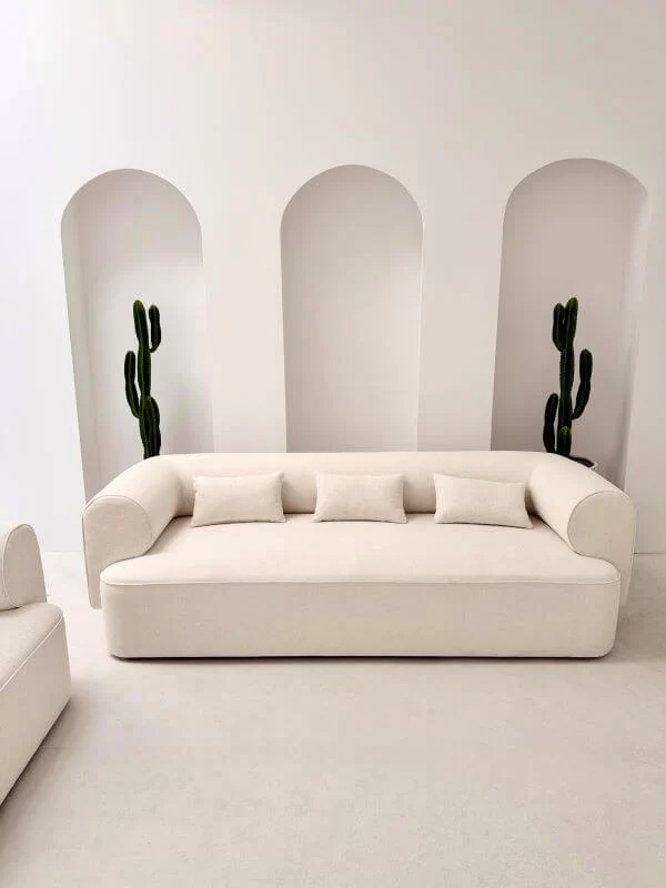 Sofa Belagio w wersji trzyosobowej to idealne połączenie minimalistycznego designu z niezrównanym komfortem. Jej prosta, lekko zaokrąglona forma oraz neutralny, kremowy odcień sprawiają, że z łatwością wpisuje się w różnorodne estetyki – od nowoczesnych i skandynawskich po klasyczne i eleganckie aranżacje. Sofa ta została zaprojektowana, aby stać się sercem każdego wnętrza.