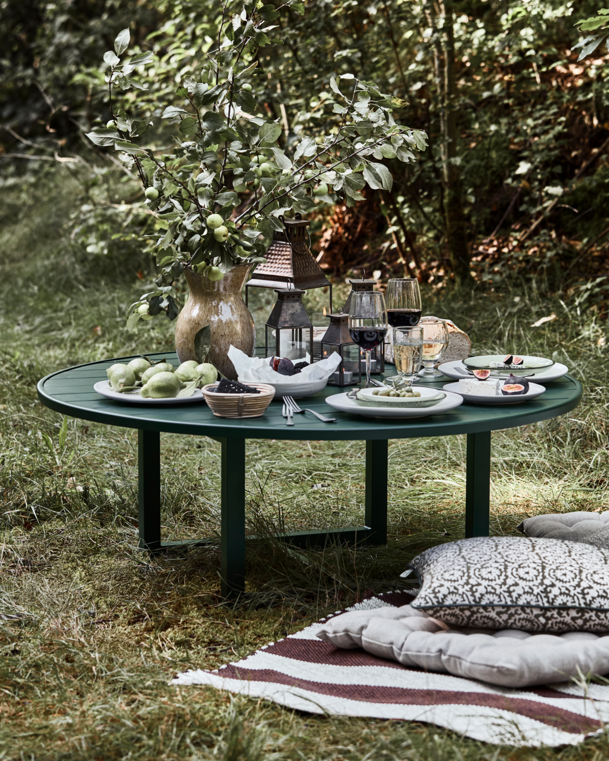 Dodaj elegancji swojej przestrzeni zewnętrznej dzięki stylowemu, okrągłemu stołowi w głębokim odcieniu butelkowej zieleni. Wykonany w całości z metalu, jest odporny na warunki atmosferyczne, co czyni go idealnym wyborem na taras, balkon czy do ogrodu. Jego solidna konstrukcja zapewnia stabilność, a smukłe nogi nadają mu lekkości i nowoczesnego charakteru. Kolor inspirowany naturą doskonale komponuje się z zielenią otoczenia, tworząc harmonijną i przytulną przestrzeń do relaksu na świeżym powietrzu. Idealny do porannej kawy, spotkań z bliskimi i letnich wieczorów na tarasie.