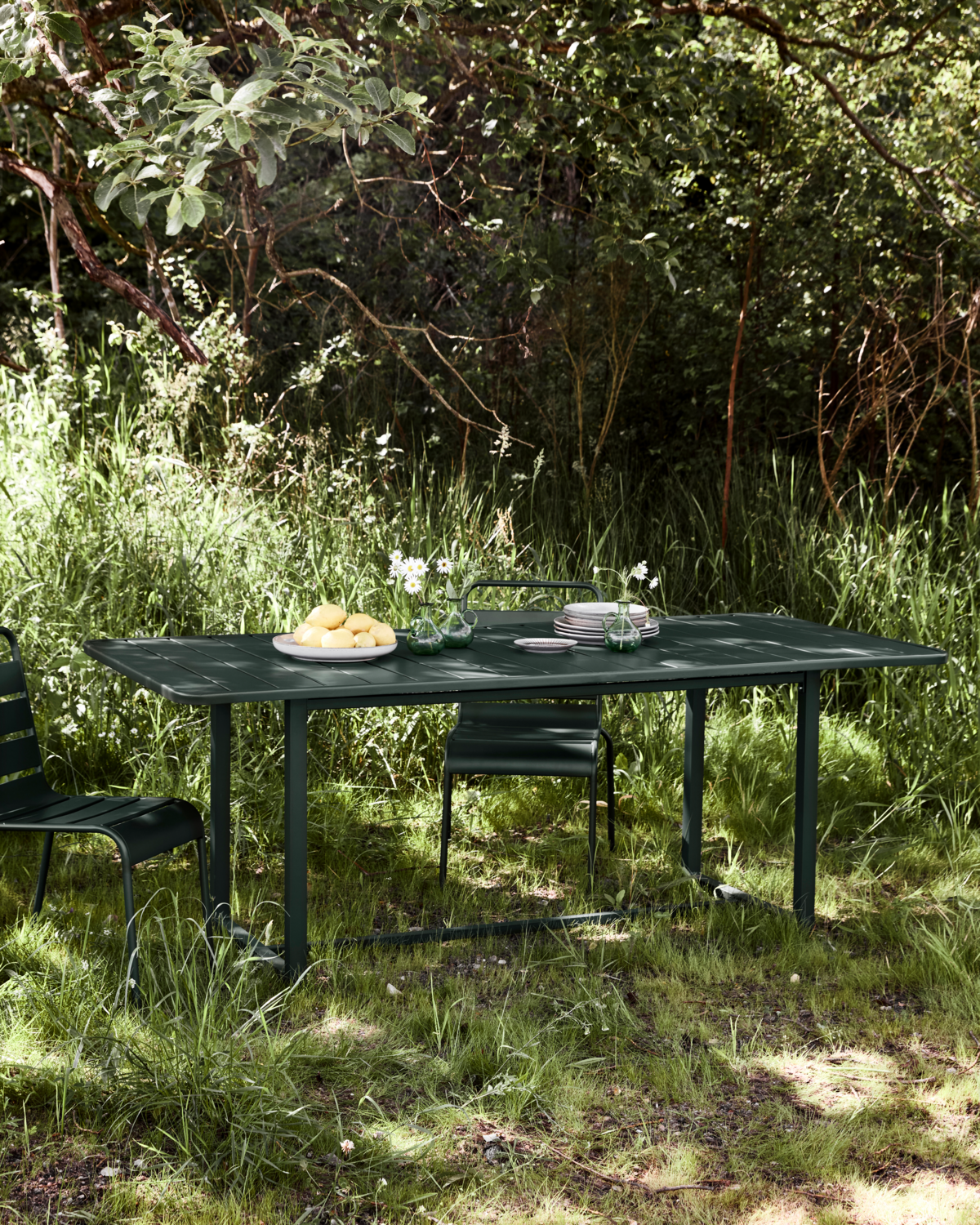 Dodaj elegancji swojej przestrzeni zewnętrznej dzięki stylowemu, prostokątnem stołowi w głębokim odcieniu butelkowej zieleni. Wykonany w całości z metalu, jest odporny na warunki atmosferyczne, co czyni go idealnym wyborem na taras, balkon czy do ogrodu. Jego solidna konstrukcja zapewnia stabilność, a smukłe nogi nadają mu lekkości i nowoczesnego charakteru. Kolor inspirowany naturą doskonale komponuje się z zielenią otoczenia, tworząc harmonijną i przytulną przestrzeń do relaksu na świeżym powietrzu. Idealny do porannej kawy, spotkań z bliskimi i letnich wieczorów na tarasie.