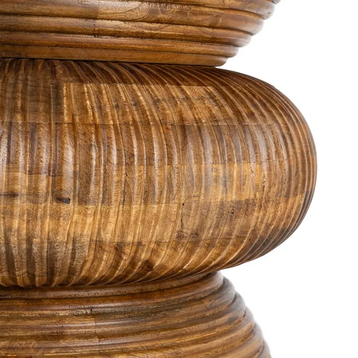 Podstawa z drewna mango: Egzotyczne drewno mango charakteryzuje się wyjątkową twardością i pięknym, ciepłym usłojeniem. Stanowi idealną przeciwwagę dla chłodnego marmuru, nadając całości balansu i szlachetnego wykończenia.