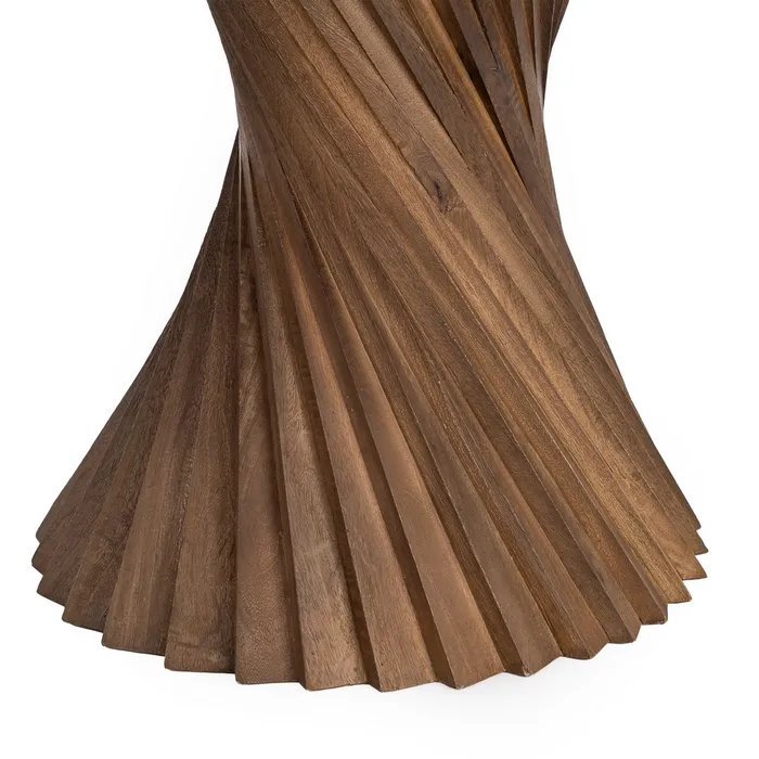 Podstawa z drewna mango: Egzotyczne drewno mango charakteryzuje się wyjątkową twardością i pięknym, ciepłym usłojeniem. Stanowi idealną przeciwwagę dla chłodnego marmuru, nadając całości balansu i szlachetnego wykończenia.