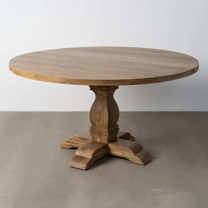 Wprowadź do swojej jadalni naturalne piękno i wyrafinowany styl ze stołem jadalnianym z drewna mango. Jego klasyczny, okrągły blat doskonale sprzyja rodzinnym spotkaniom i rozmowom, a solidna, misternie rzeźbiona podstawa dodaje mu unikalnego charakteru. Ciepły, naturalny odcień drewna mango wniesie do wnętrza przytulną atmosferę, a solidna konstrukcja zapewni długie lata użytkowania. To idealny mebel dla tych, którzy cenią połączenie tradycyjnego rzemiosła z funkcjonalnością.