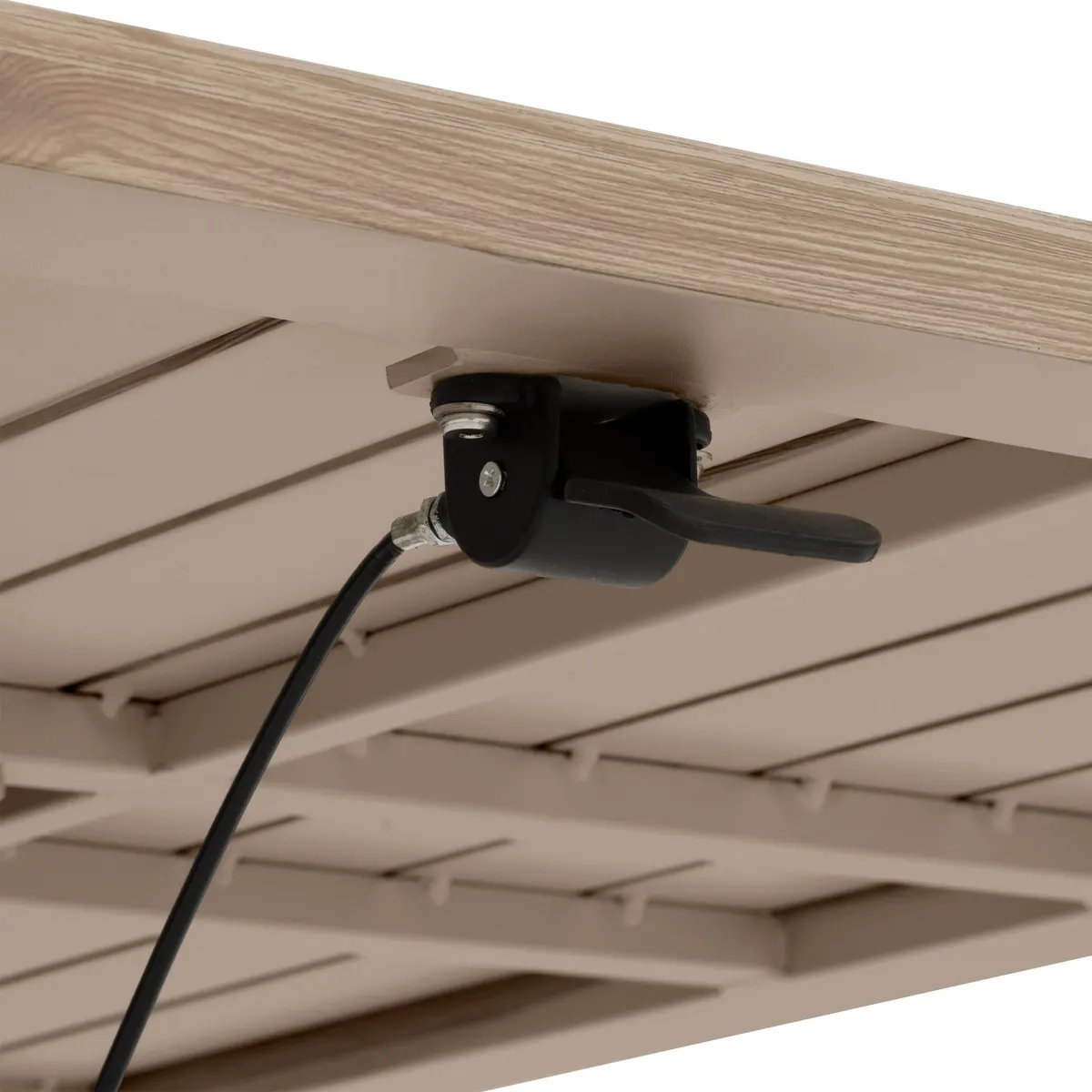 - Blat: aluminium z drewnianymi akcentami