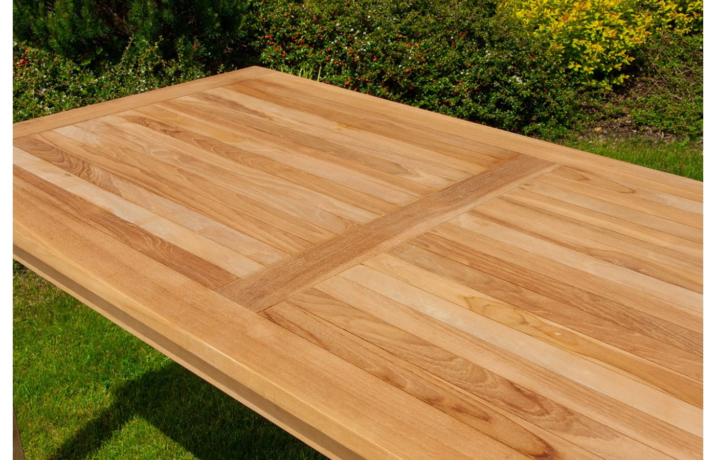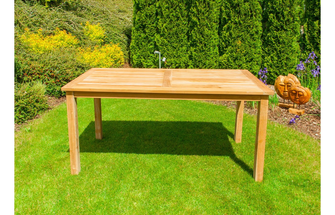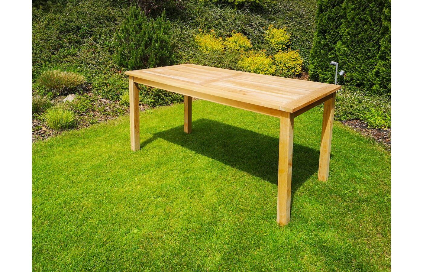 Ten prostokątny stół ogrodowy o wymiarach 160x80 cm to doskonały wybór na taras lub do ogrodu, zapewniając komfortowe miejsce dla 6-8 osób. Wykonany z litego drewna tekowego, wyróżnia się trwałością oraz odpornością na zmienne warunki atmosferyczne, a jego pielęgnacja jest wyjątkowo prosta. Naturalne ciepło drewna tekowego idealnie współgra z otoczeniem, czyniąc każdą chwilę spędzoną przy nim przyjemnością na długie lata.