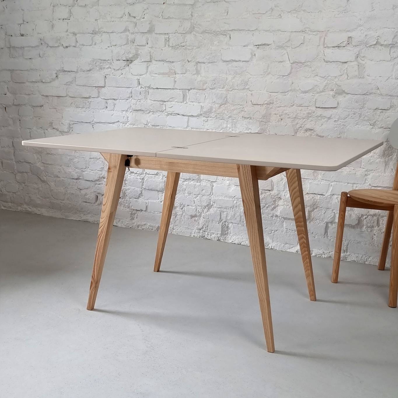 Materiał: drewno jesionowe, laminowana oraz lakierowana płyta MDF Grubość blatu: 19 mm
