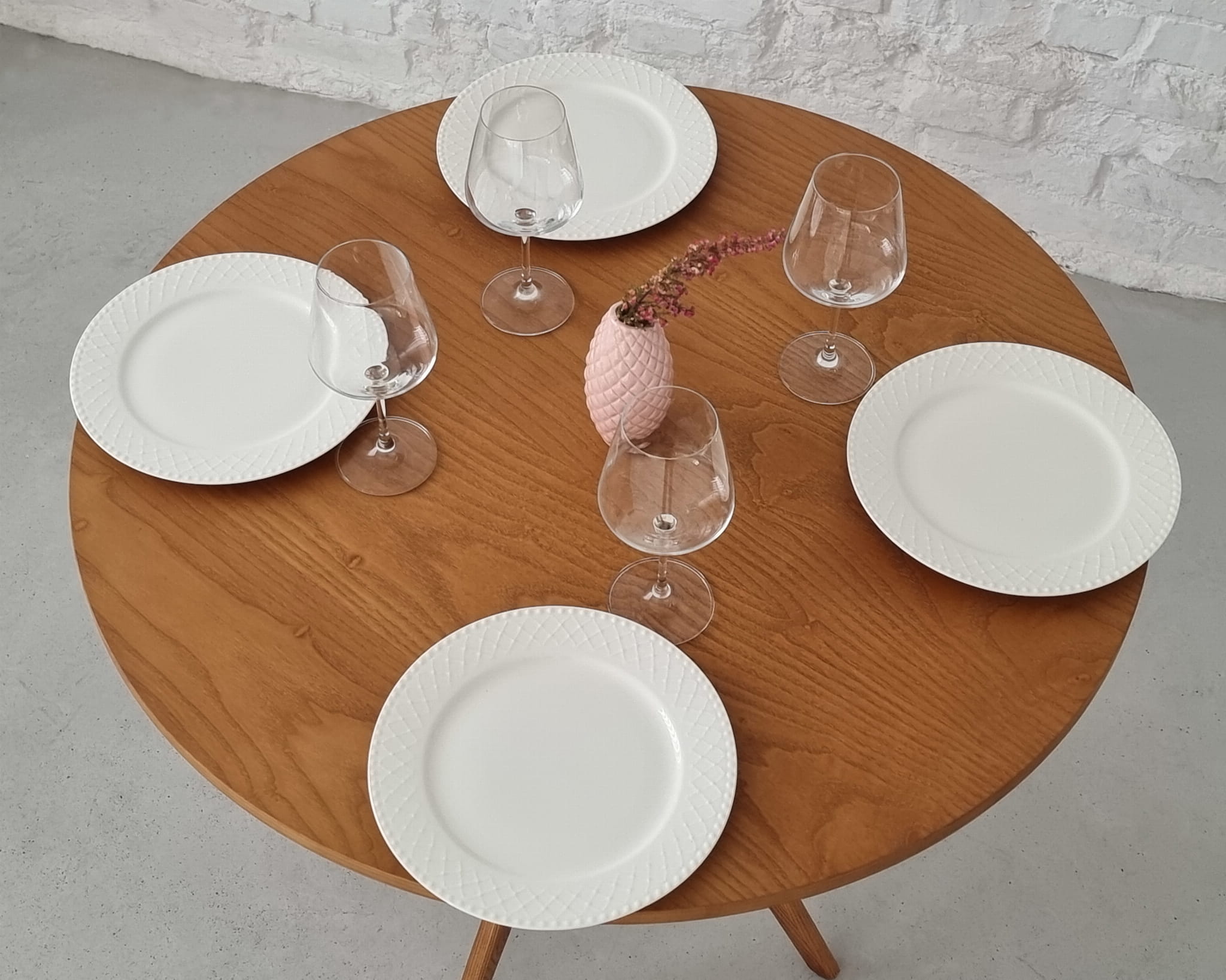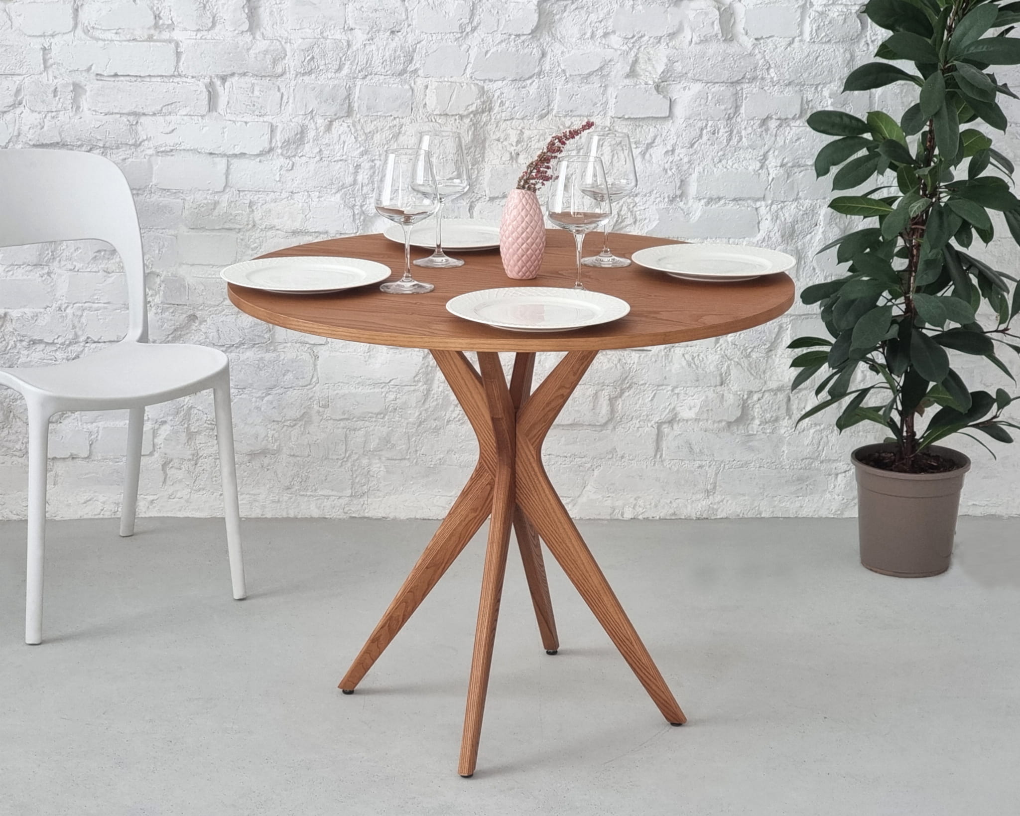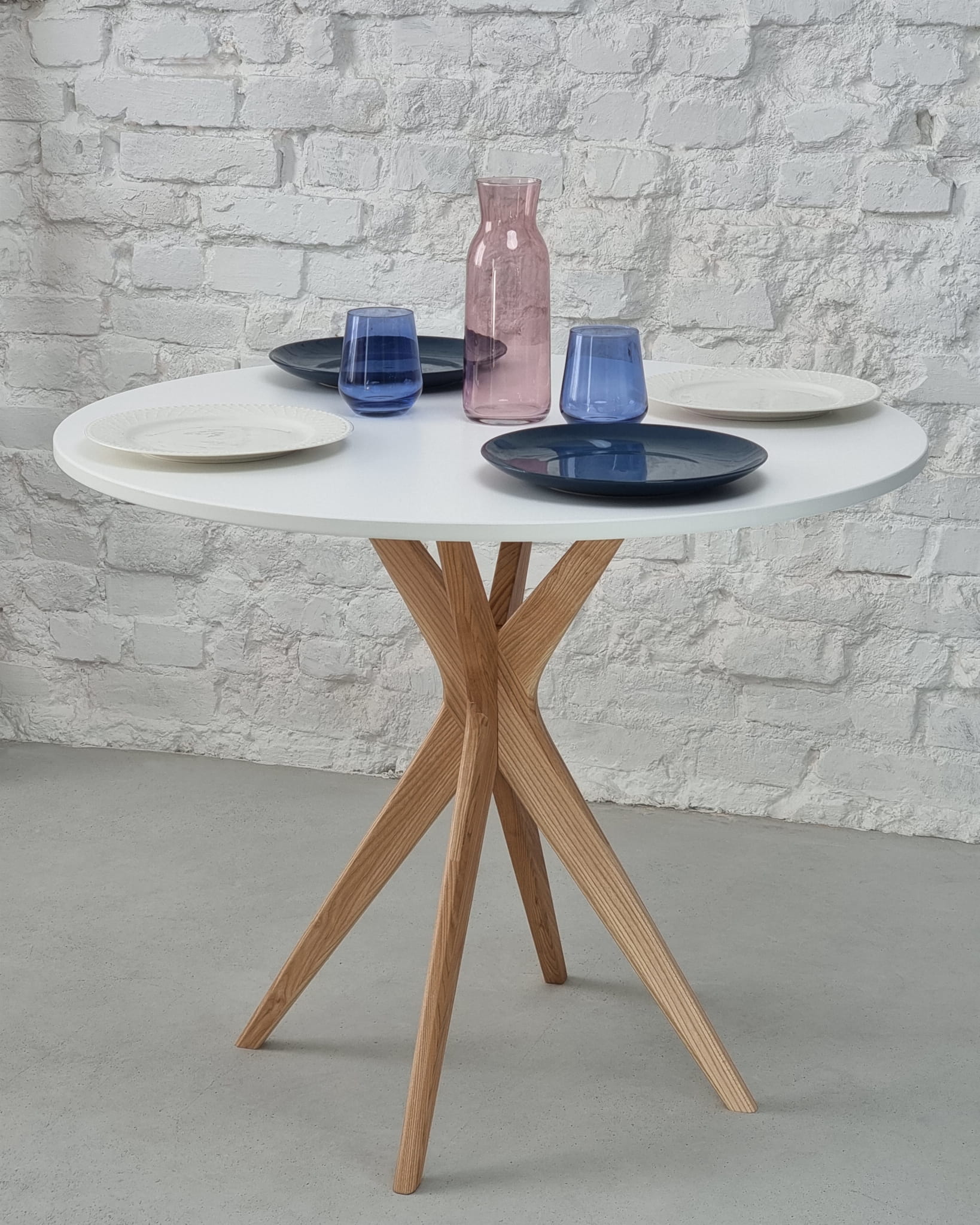 Okrągły stół o średnicy 80 lub 90 cm. Lekki, kompaktowy, przeznaczony do niewielkich przestrzeni. Stół z jedną nogą jest wygodnym rozwiązaniem, gdy przy stole siedzi więcej osób lub przestrzeń dookoła jest ograniczona. Okrągły stół JUBI na jednej nodze oferujemy w trzech rozmiarach: fi 70 (średnica 70 cm), fi 80 (średnica 80 cm) oraz fi 90 (średnica 90 cm).