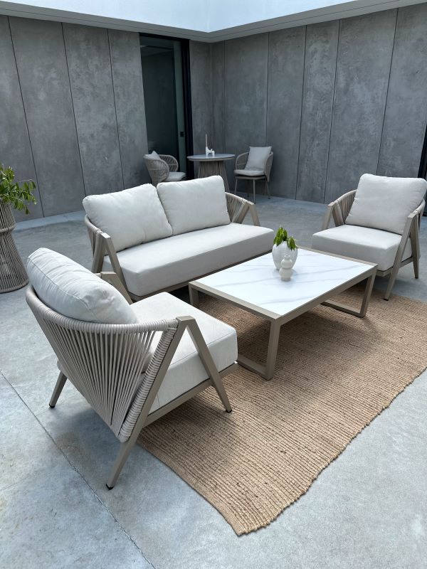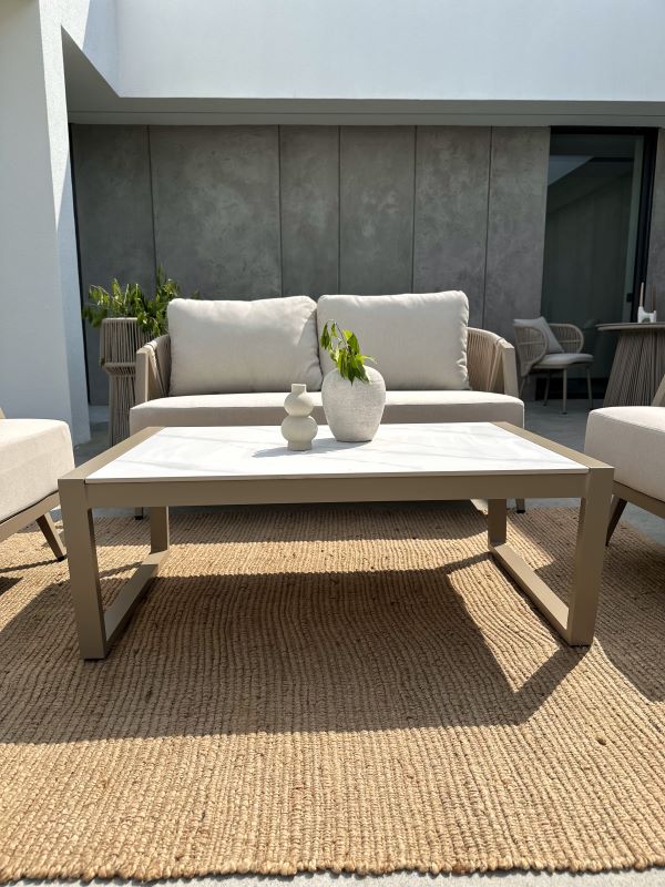 Nowoczesna forma, trwałe materiały i uniwersalny styl — stolik Maksymo to doskonałe dopełnienie zestawu wypoczynkowego z tej samej kolekcji. Jego geometryczna forma i minimalistyczny design idealnie wpisują się w aranżacje tarasowe, ogrodowe oraz nowoczesne wnętrza.