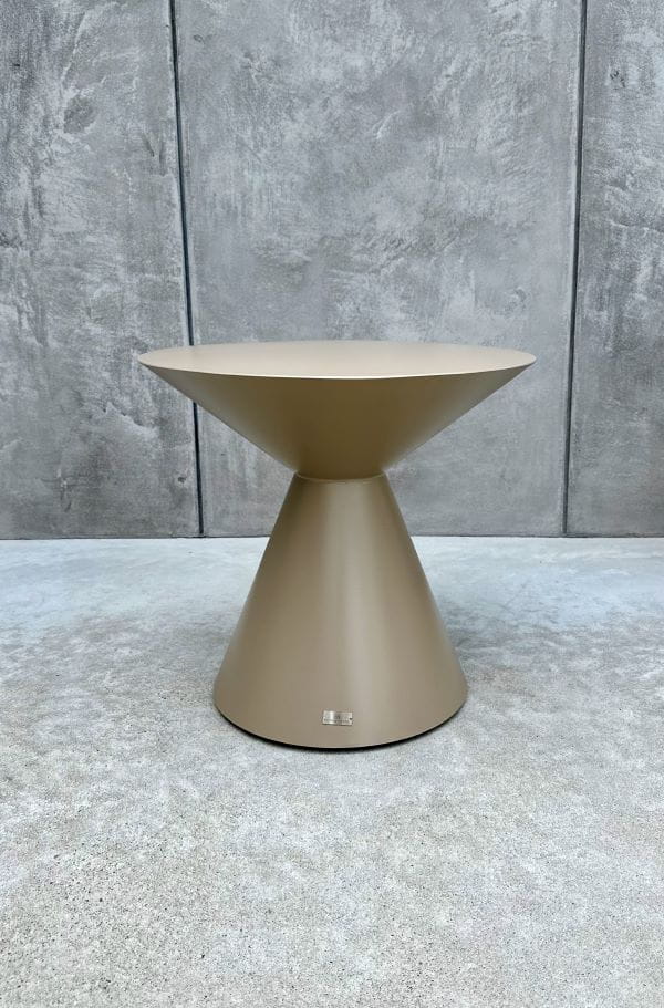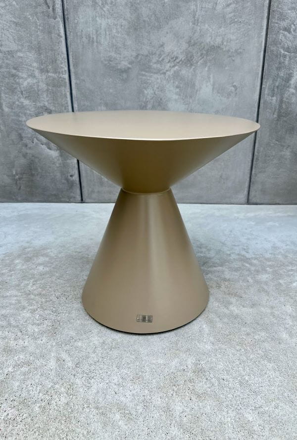 Stolik Riccardo to subtelne połączenie nowoczesnej formy i wyrafinowanego stylu. Jego lekka, aluminiowa konstrukcja w szampańskim odcieniu wprowadza do wnętrza nutę luksusu, nie rezygnując przy tym z funkcjonalności. Okrągły blat zapewnia wygodną przestrzeń użytkową, a stożkowa noga dodaje całości niebanalnego charakteru, przyciągając wzrok swoją formą i zapewniając stabilność.