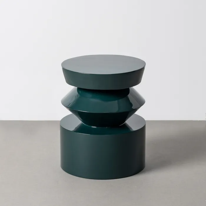 Stolik boczny - lakierowany zielony to odważny manifest współczesnego designu, w którym geometryczna dyscyplina spotyka się z luksusowym wykończeniem na wysoki połysk. Jego unikalna, totemiczna sylwetka i głęboki odcień leśnej zieleni sprawiają, że mebel ten staje się intrygującym punktem centralnym każdego nowoczesnego wnętrza.