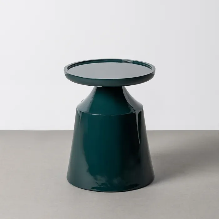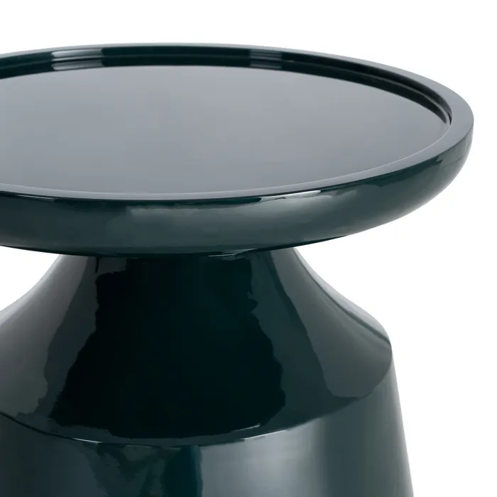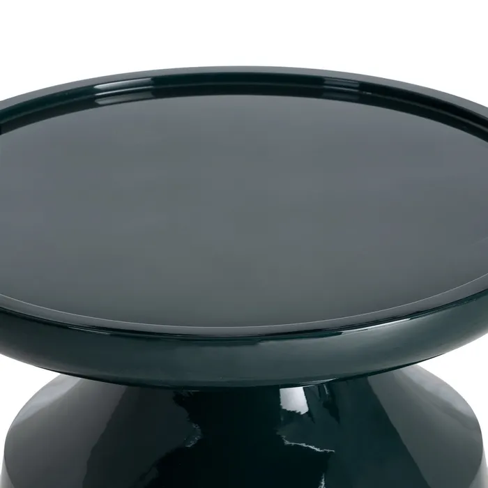 Ten model został zaprojektowany z myślą o wnętrzach, które potrzebują wyrazistego, barwnego akcentu o nienagannej formie. Wykonany z wysokiej jakości płyty MDF, stolik pokryty jest grubą warstwą lakieru w kolorze nasyconej, butelkowej zieleni. Lustrzane wykończenie nie tylko przyciąga wzrok, ale również optycznie powiększa przestrzeń, odbijając otoczenie i światło. Charakterystyczny blat z podniesionym rantem dodaje mu funkcjonalności, chroniąc drobne przedmioty przed ześlizgnięciem się.