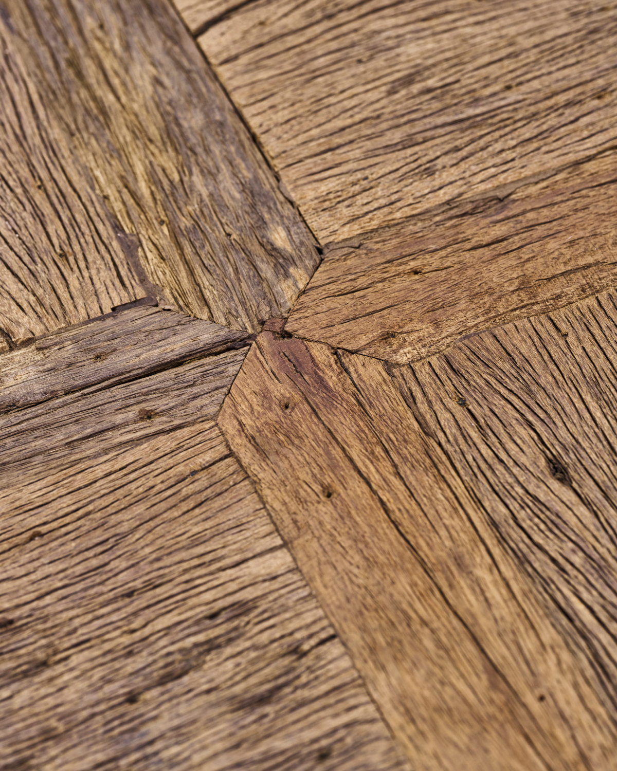 Wprowadź do swojego salonu element ponadczasowego uroku dzięki temu pięknie wykonanemu stolikowi kawowemu. Jego design to celebracja rzemiosła – blat stworzony jest z zachwycającego wzoru drewnianych paneli, który wyraźnie podkreśla kunszt wykonania.