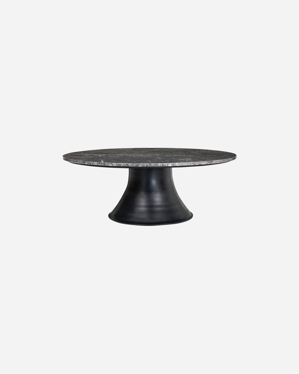 Stolik kawowy HDGaya to połączenie luksusu i funkcjonalności, które doskonale uzupełni każde wnętrze. Jego okrągły blat wykonany z ciemnego marmuru nadaje mu eleganckiego charakteru, a metalowa podstawa zapewnia stabilność i trwałość.