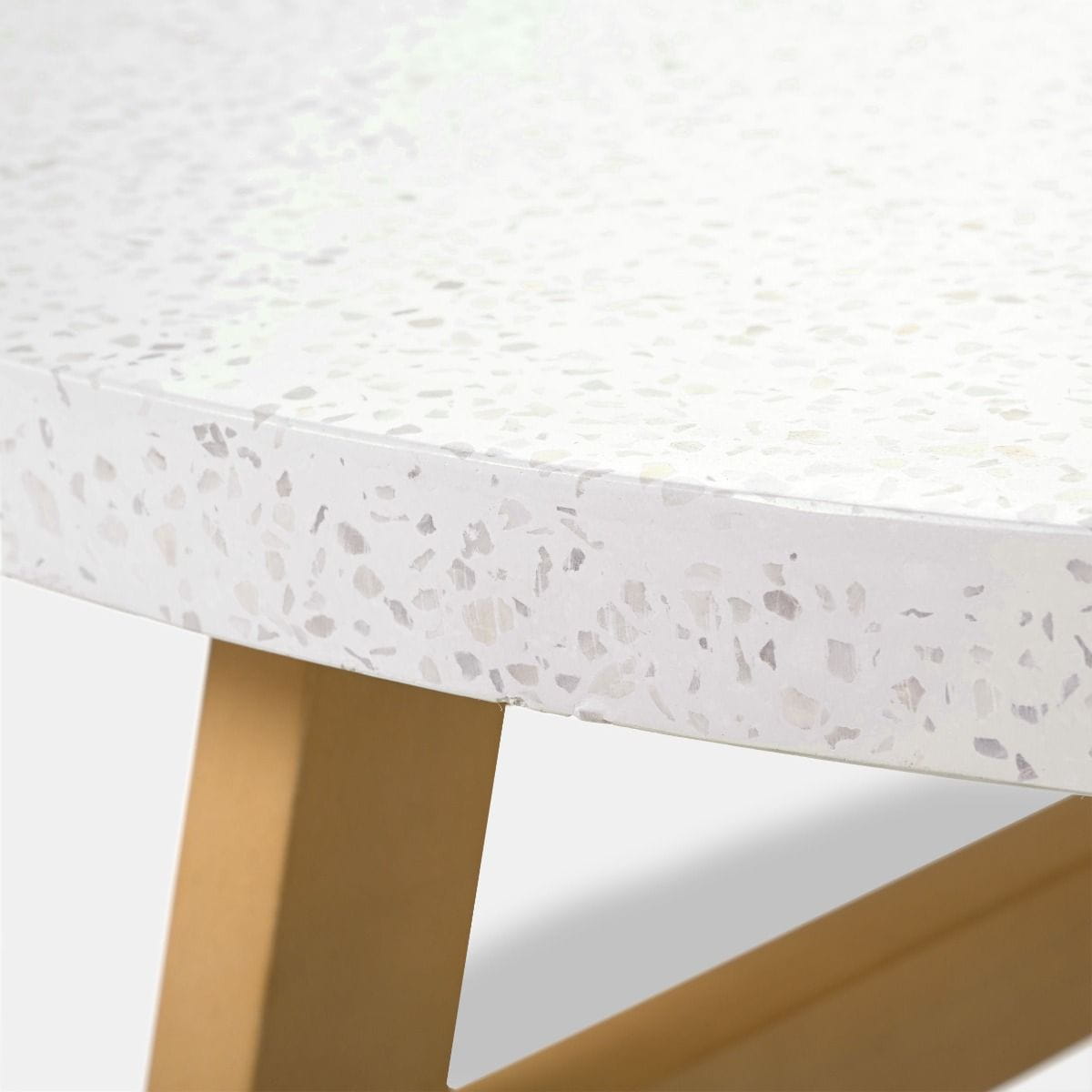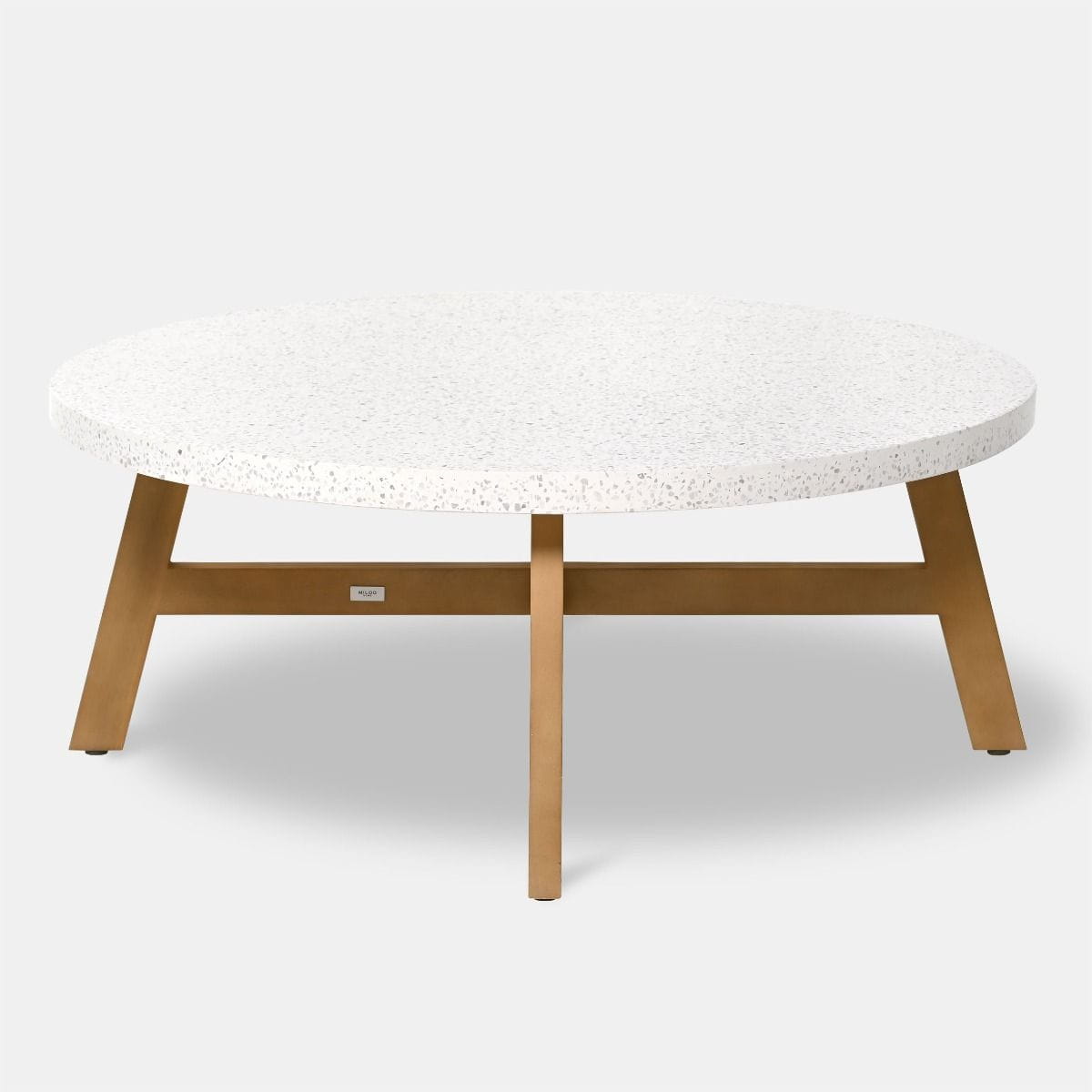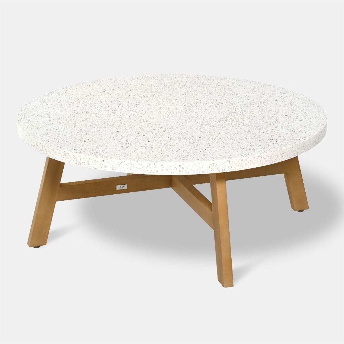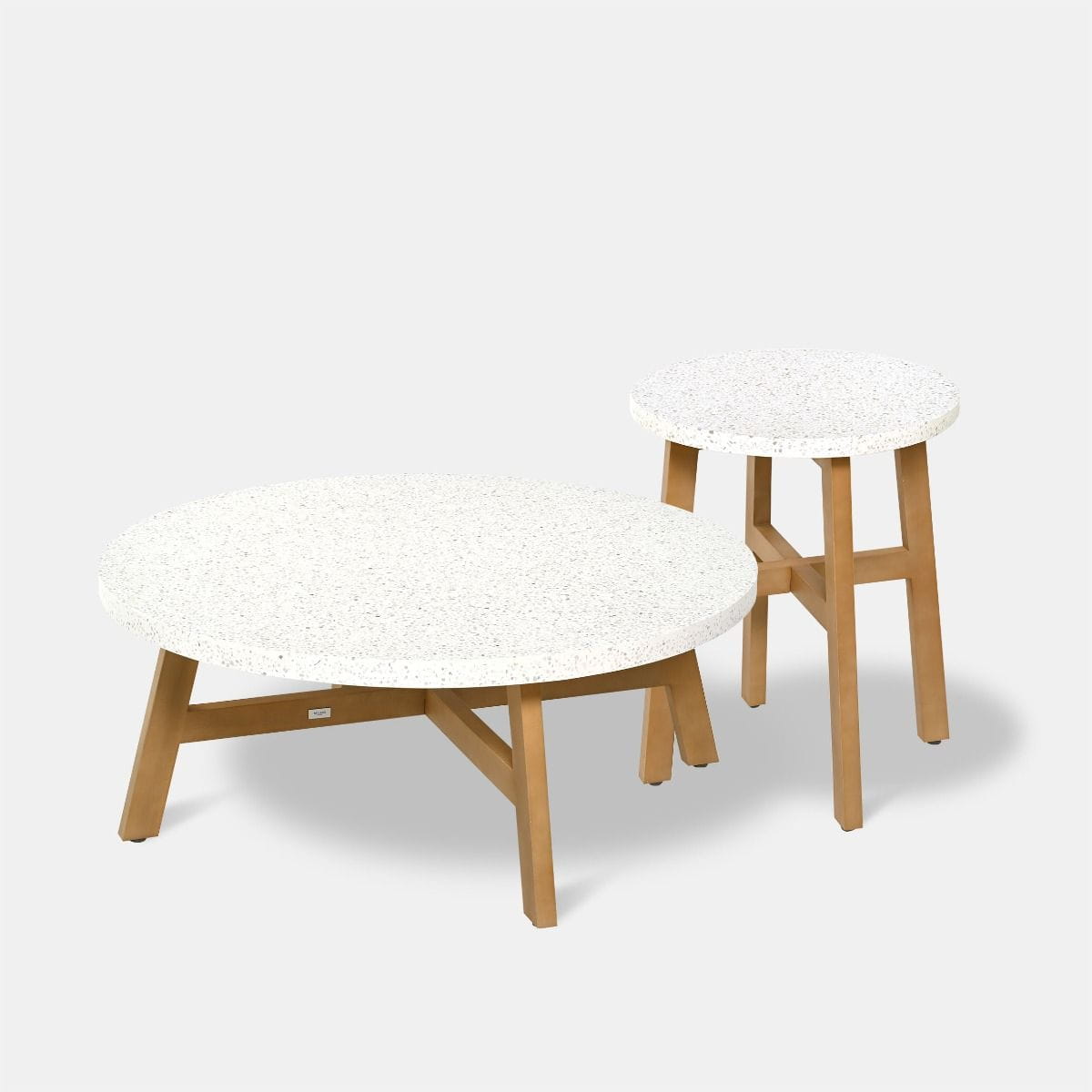 Stolik kawowy L Pego to idealny dodatek do ogrodowej strefy wypoczynkowej. Jego okrągły blat wsparty na stabilnej, drewnianej podstawie pozwala na wygodne serwowanie przekąsek i napojów domownikom oraz gościom. Na blacie stolika Pego znajdzie się też miejsce na odłożenie czytanej książki czy gazety. Mebel możesz też potraktować jako dekorację przestrzeni, a wszystko dzięki jego nowoczesnemu wzornictwu. Stolik utrzymany jest w minimalistycznej formie i praktycznie pozbawiony dekoracji. Na jego elegancje wpływają jednak materiały wykonania. Niezwykle stylowo prezentuje się zarówno podstawa z drewna akacjowego, jak i pasujący do niej blat tarazzo.