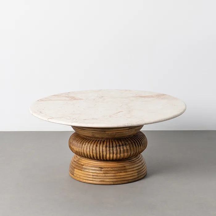 Stolik kawowy z kolekcji Room to propozycja dla osób, które szukają mebli z „duszą” i charakterem. Połączenie ciężkiego, naturalnego marmuru z egzotycznym drewnem mango tworzy kompozycję pełną kontrastów: chłód kamienia spotyka się tu z organicznym ciepłem drewna. To mebel, który nie tylko dopełnia strefę wypoczynkową, ale staje się jej głównym punktem architektonicznym.