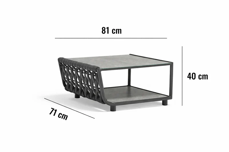 Optymalne wymiary: Powierzchnia 81x71 cm zapewnia komfortową przestrzeń dla kilku osób, a wysokość 40 cm idealnie licuje się z siedziskami sof i foteli z serii Serano.