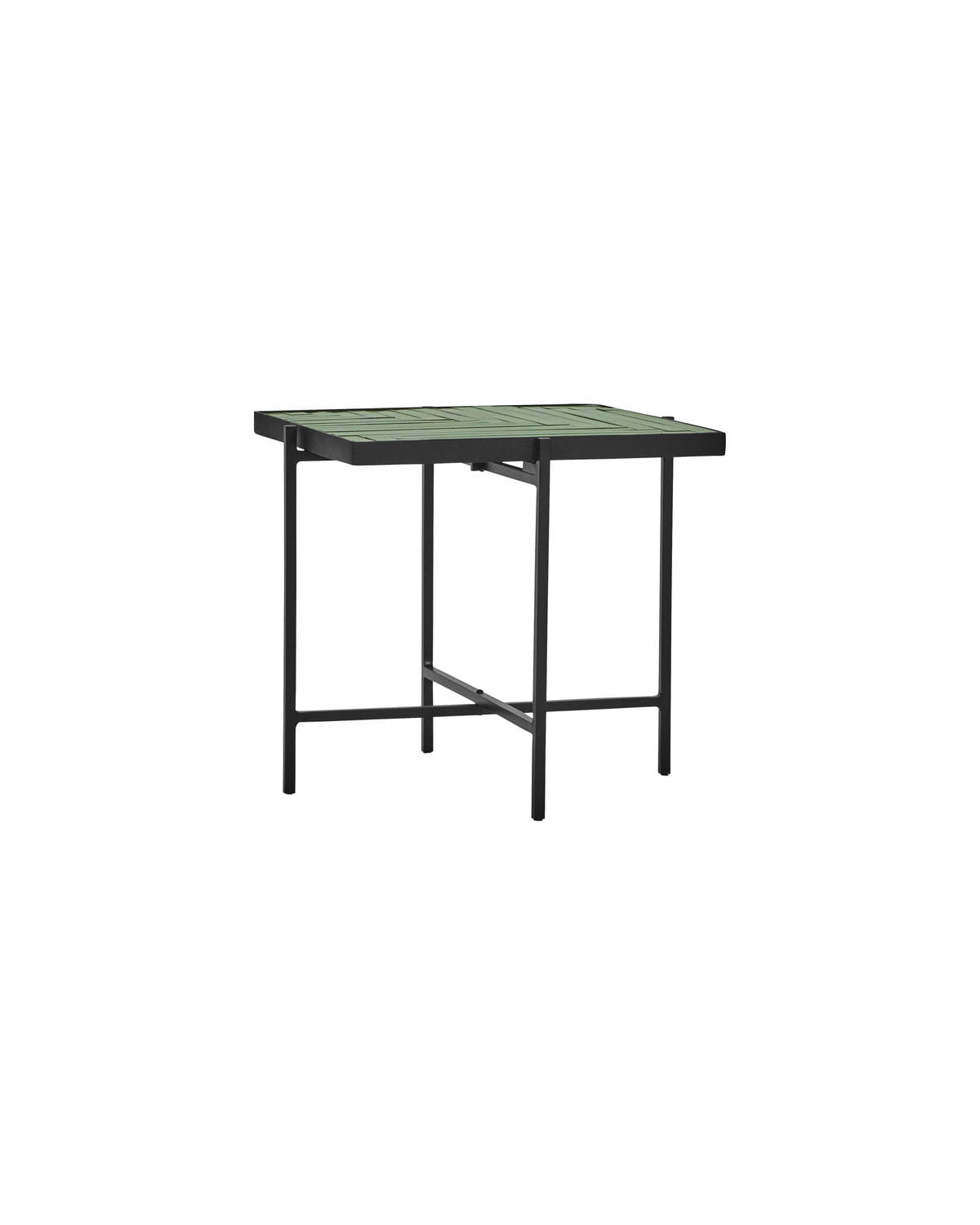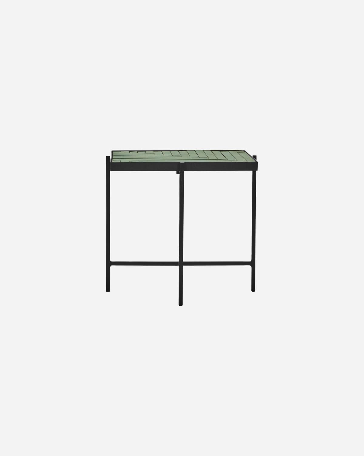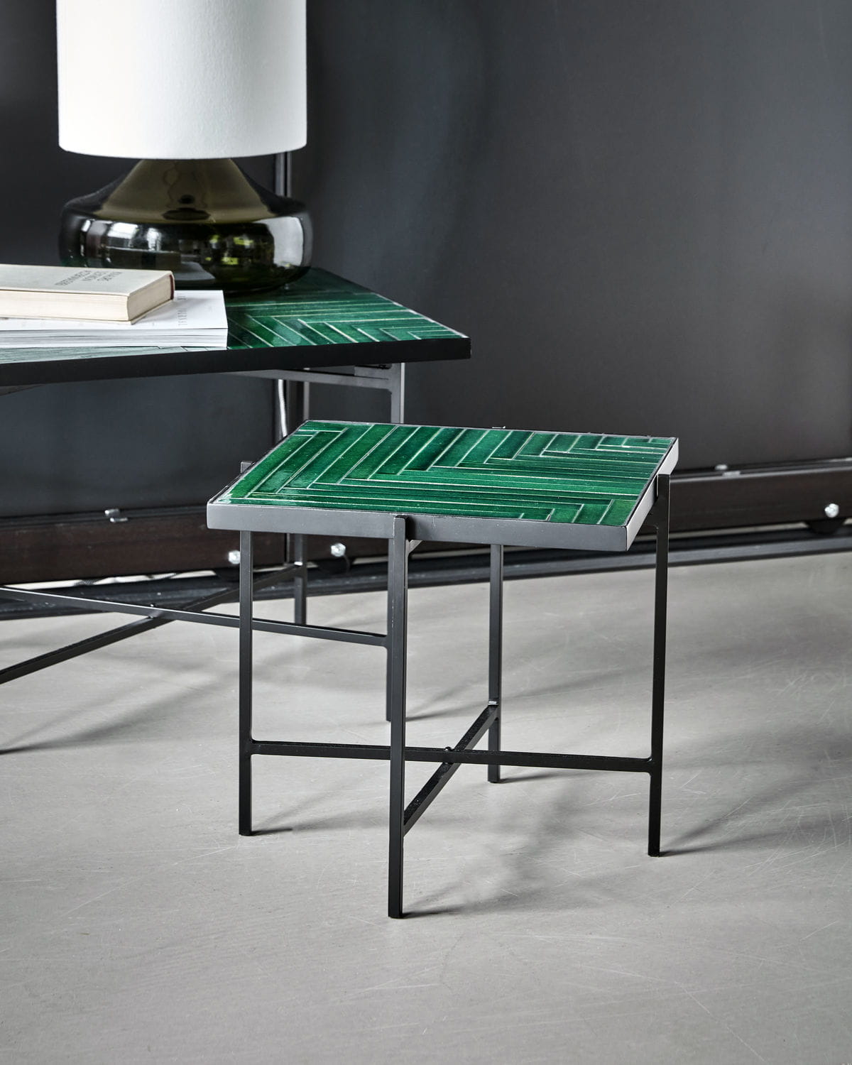 Dzięki temu oszałamiającemu stolikowi dodajesz odrobinę elegancji i funkcjonalności do każdego pomieszczenia. Wyposażony w blat z zielonych płytek ceramicznych i elegancką czarną żelazną ramę, każdy ręcznie robiony element ma unikalne warianty kolorystyczne, zapewniając, że nie ma dwóch takich samych stołów.