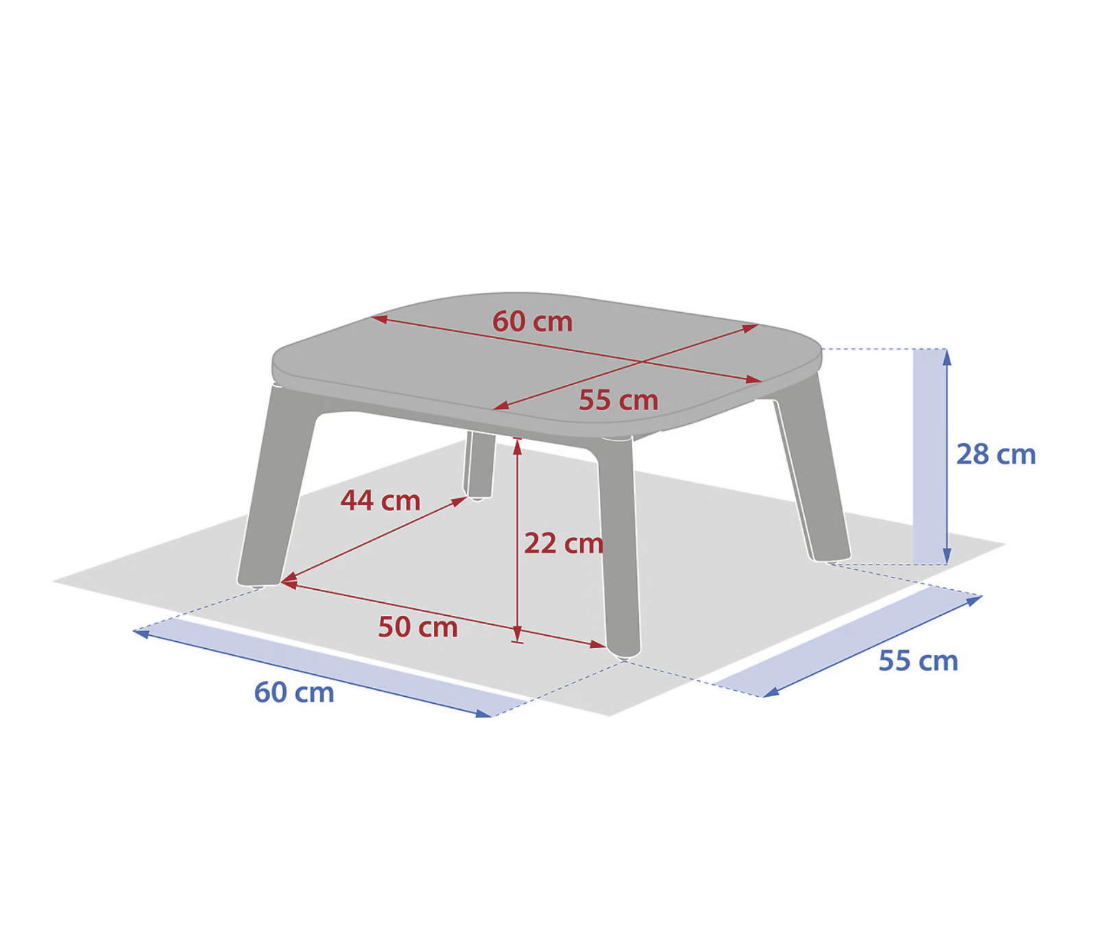 Wymiary: długość 60 cm, szerokość 55 cm, wysokość 28 cm.