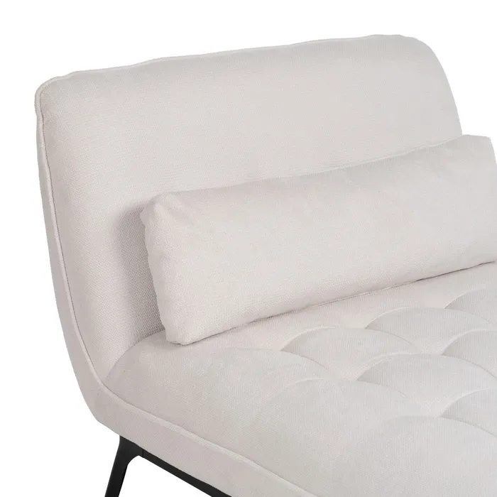 Wprowadź do swojego wnętrza odrobinę luksusu i relaksu dzięki eleganckiemu szezlongowi, który łączy minimalistyczny design z maksymalnym komfortem. Jego opływowa linia, w połączeniu z miękkim, kremowym obiciem, tworzy idealne miejsce do odpoczynku z książką lub po prostu do leniuchowania. Smukła, czarna metalowa podstawa nadaje całości nowoczesnej lekkości, pięknie kontrastując z jasną tkaniną. Ten szezlong jest kwintesencją stylu i wygody, tworząc przytulny, a zarazem wyrafinowany kącik w każdym pomieszczeniu.