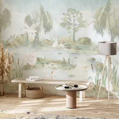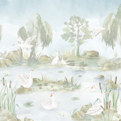 TAPETA GĄSKI NAD STAWEM W38