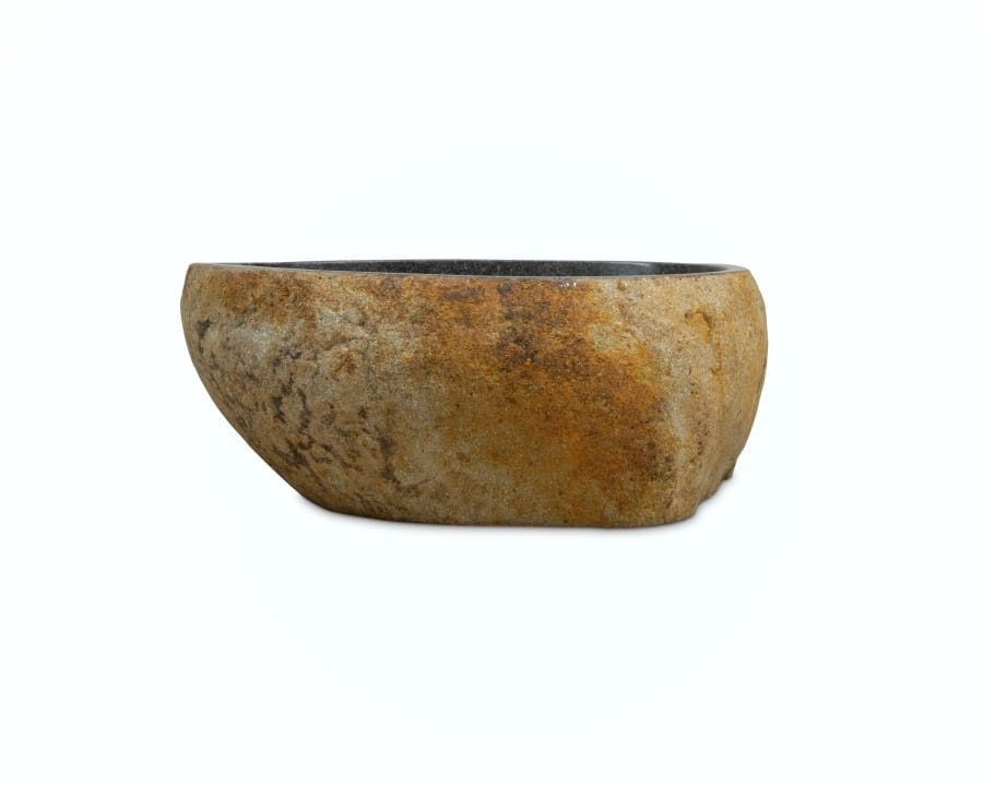 Umywalka nablatowa wykonana ręcznie z kamienia rzecznego. Naturalna surowość i niepowtarzalność zachwyci tych, którzy poszukują nieszablonowych dodatków do nowoczesnych wnętrz.