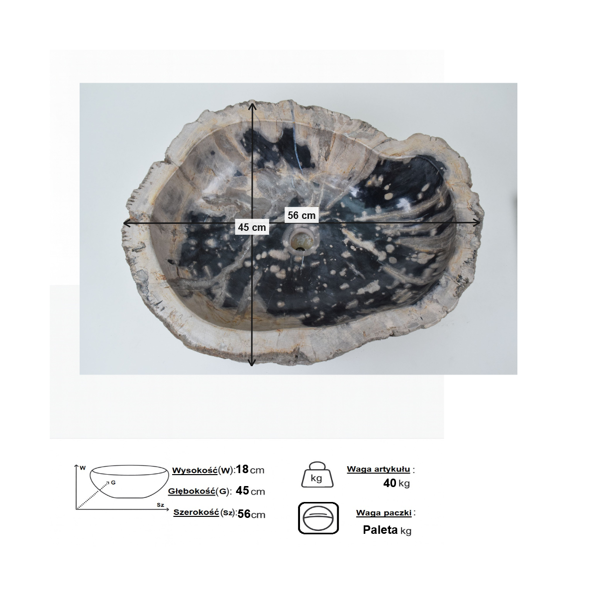Umywalka ze skamieniałego drewna
