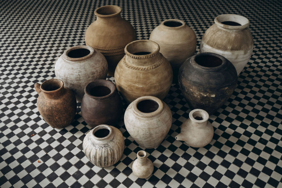 Ta kolekcja dekoracyjnych wazonów to hołd dla kulturowego dziedzictwa Indonezji i lokalnej estetyki. Wazony, ręcznie lepione przez rzemieślników z Bali z drobnoziarnistej gliny, urzekają swoją surową, naturalną strukturą i klasycznymi formami, które subtelnie nawiązują do stylu antique. Barwy ziemi nadają im wyjątkowego charakteru, wprowadzając do wnętrza rustykalny urok.
