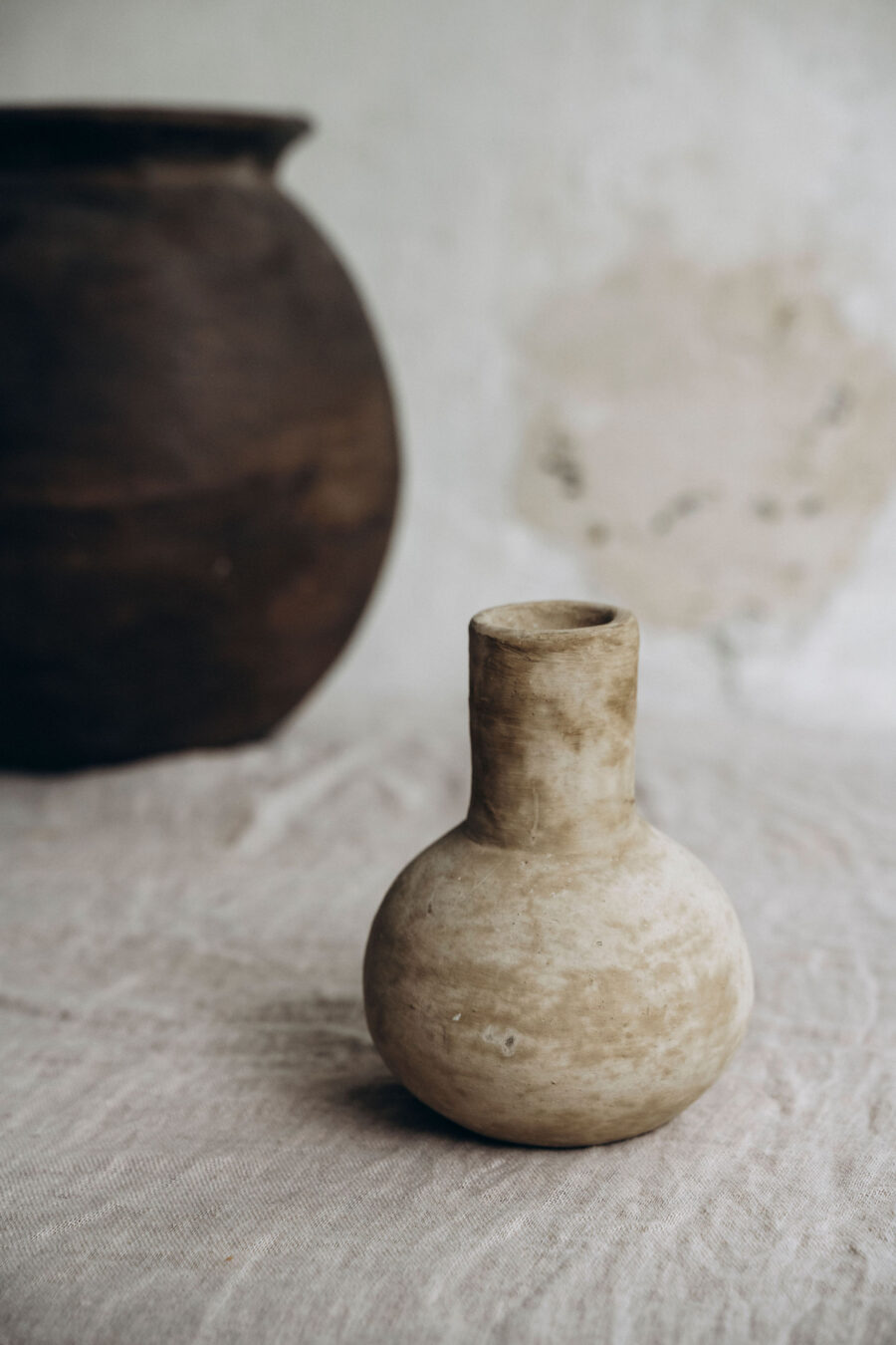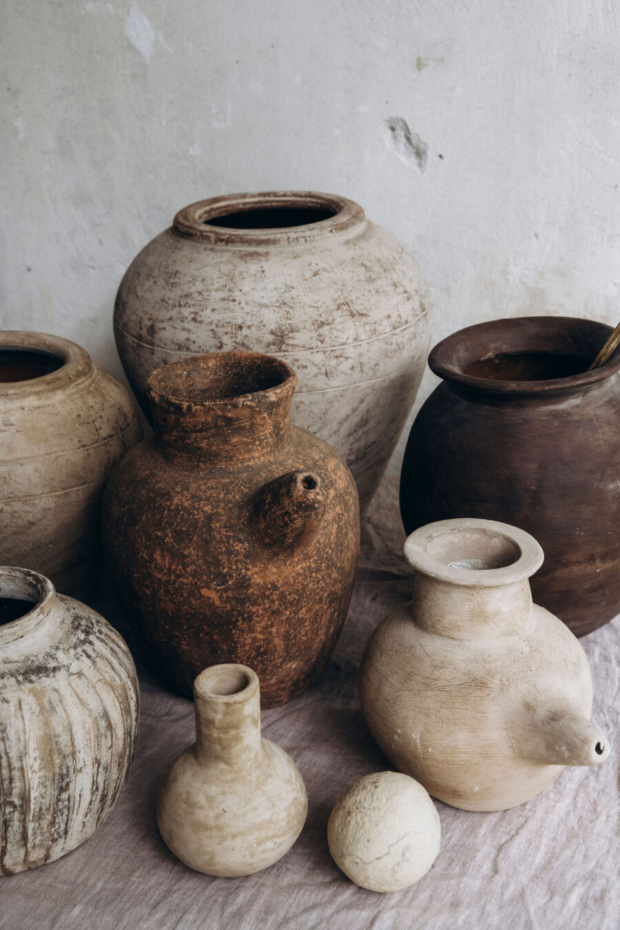 Ta kolekcja dekoracyjnych wazonów to hołd dla kulturowego dziedzictwa Indonezji i lokalnej estetyki. Wazony, ręcznie lepione przez rzemieślników z Bali z drobnoziarnistej gliny, urzekają swoją surową, naturalną strukturą i klasycznymi formami, które subtelnie nawiązują do stylu antique. Barwy ziemi nadają im wyjątkowego charakteru, wprowadzając do wnętrza rustykalny urok.