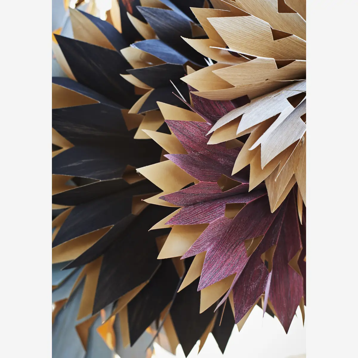 Gwiazda została wykonana z forniru papierowego i ozdobiona łańcuchem 15 światełek LED. Pięknie wygląda powieszona w oknie, na drzwiach czy ścianie.