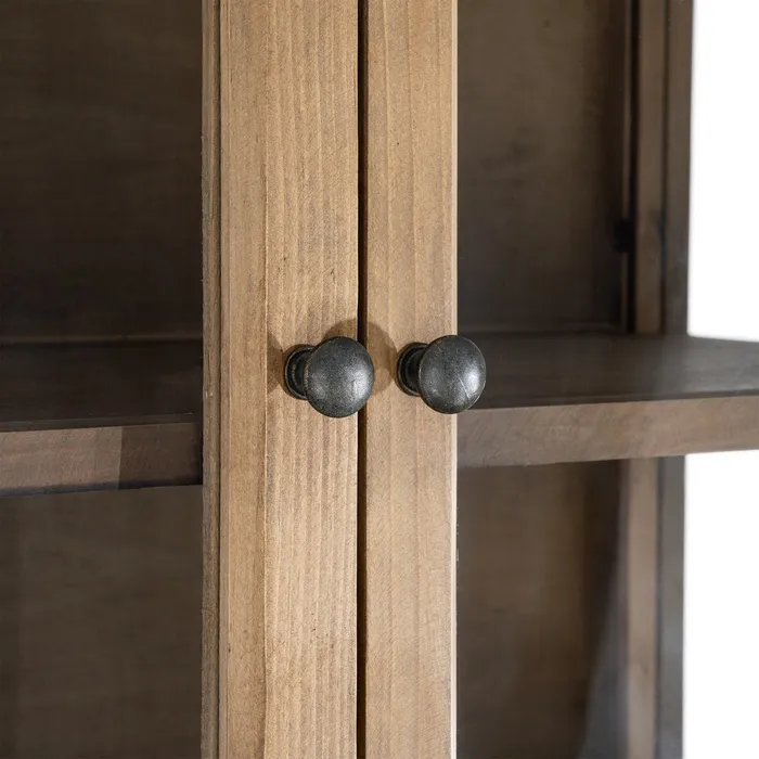 Przeszklone fronty: Drzwi o wymiarach 36x51,5 cm pozwalają na bezpieczną ekspozycję ulubionej ceramiki, książek czy pamiątek, chroniąc je jednocześnie przed kurzem.