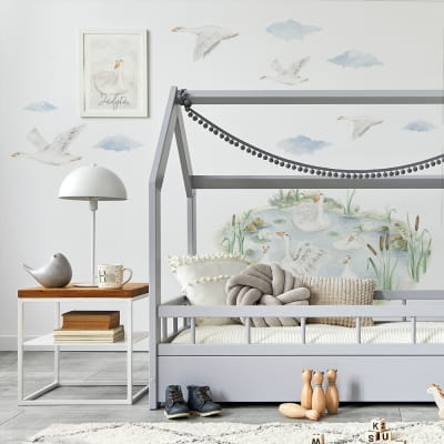 Drukowana naklejka na ścianę do pokoju dziecięcego wycinana z folii matowej, pokryta laminatem.