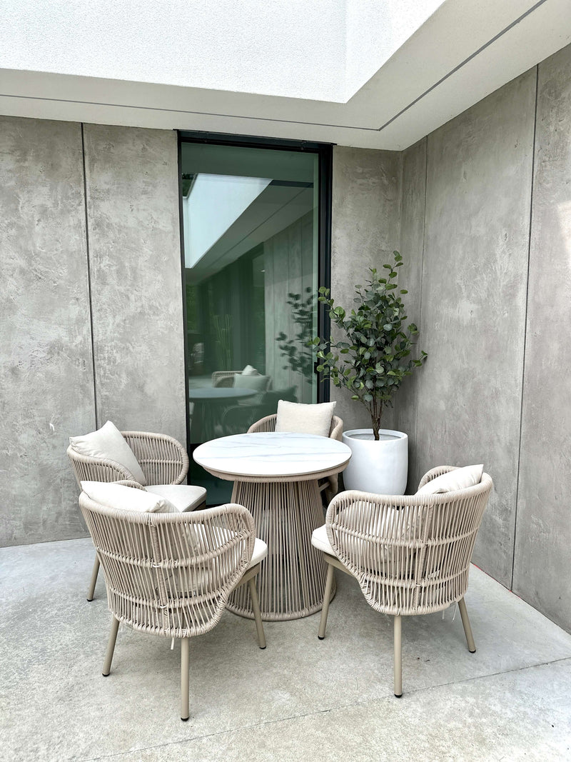 Zestaw krzeseł AZZURA to harmonijne połączenie minimalistycznej formy, lekkości aluminium i stylu, który nie przemija. Ich szlachetny, szampański odcień oraz nowoczesna sylwetka sprawiają, że meble te stają się biżuteryjnym dopełnieniem każdego tarasu, ogrodu czy balkonu. To wybór dla osób, które cenią estetykę na równi z bezkompromisową trwałością.