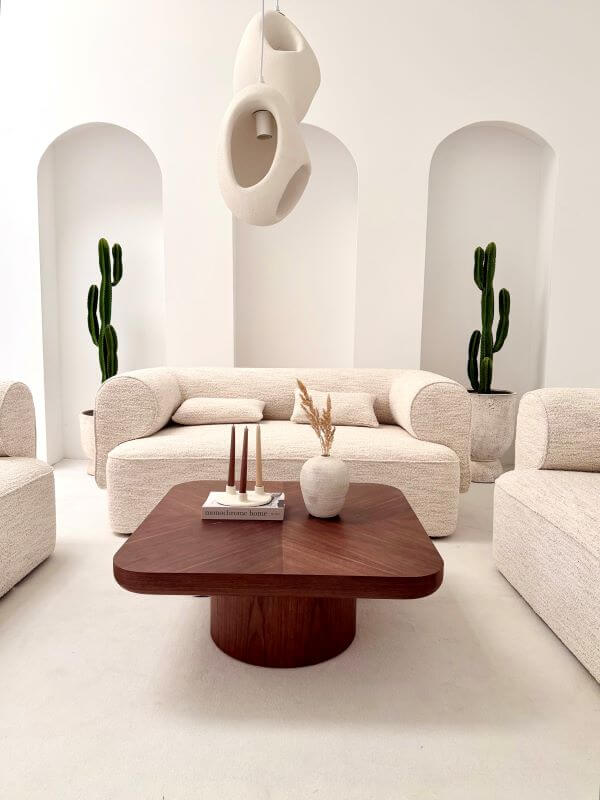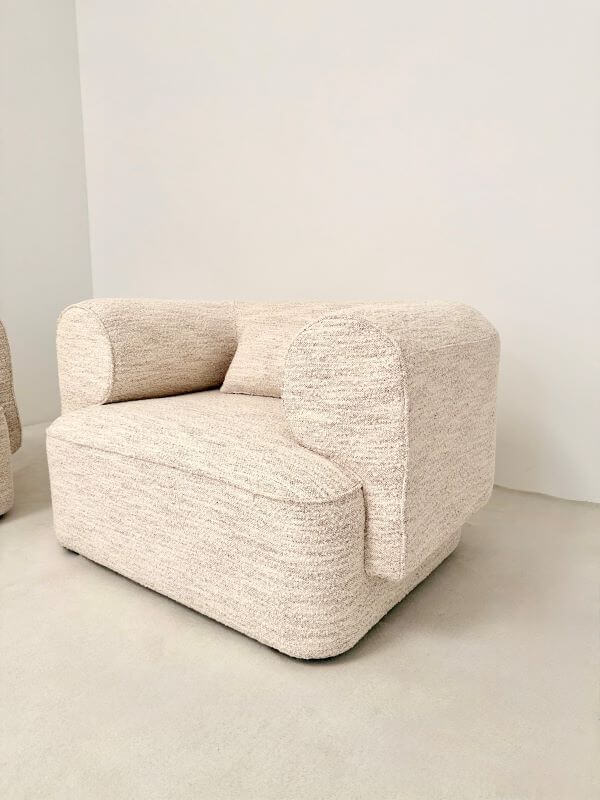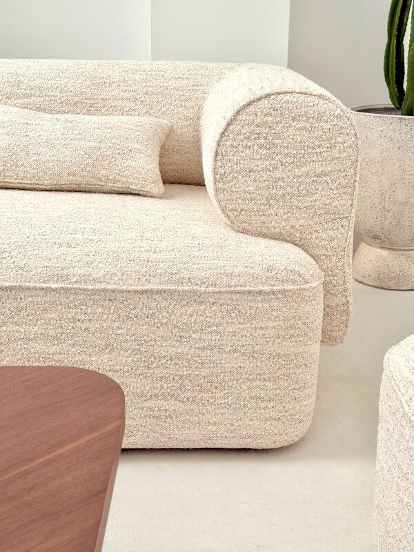 Spójność stylistyczna: Zaokrąglone korpusy i dopasowane kolorystycznie poduszki tworzą harmonijną całość, która wprowadza do wnętrza spokój i elegancję.