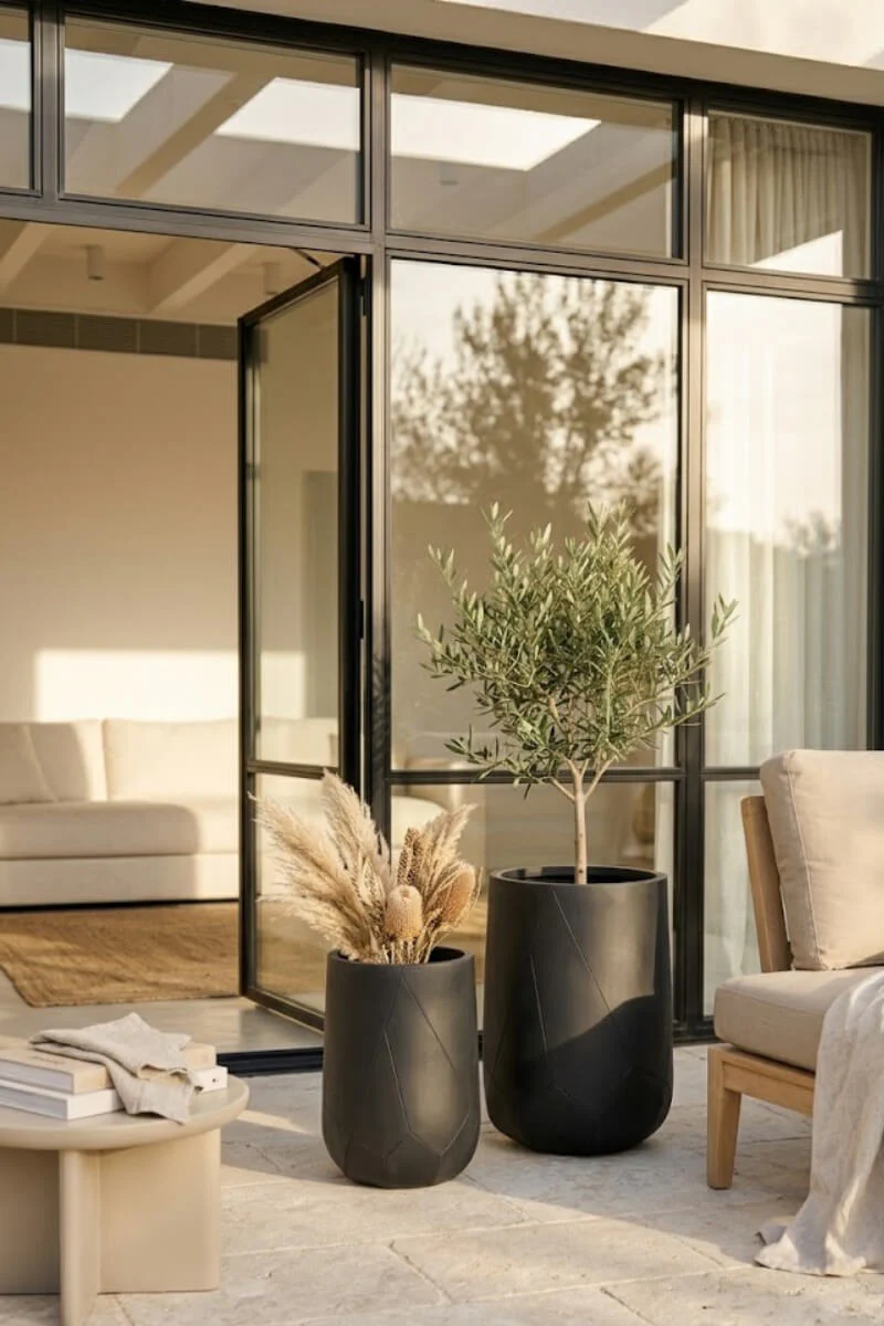 Wzmocniona konstrukcja (15% Włókno Szklane): Domieszka fiberglasu sprawia, że donice są odporne na pęknięcia i znacznie lżejsze niż ich betonowe odpowiedniki. Dzięki temu rearanżacja tarasu czy salonu staje się dziecinnie prosta.