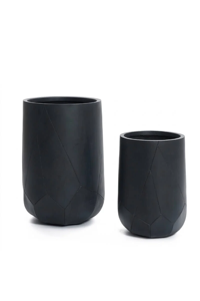 Zestaw donic Odelle Black Tall w rozmiarach S (45 cm) oraz M (59 cm) to propozycja dla tych, którzy chcą uniknąć przypadkowości w projektowaniu wnętrz. Połączenie dwóch wysokości pozwala na natychmiastowe stworzenie dynamicznej, kaskadowej kompozycji, która nadaje przestrzeni głębię i profesjonalny sznyt. Głęboka, matowa czerń w zestawieniu z geometryczną fakturą 3D to synonim luksusu w wydaniu loftowym i minimalistycznym.