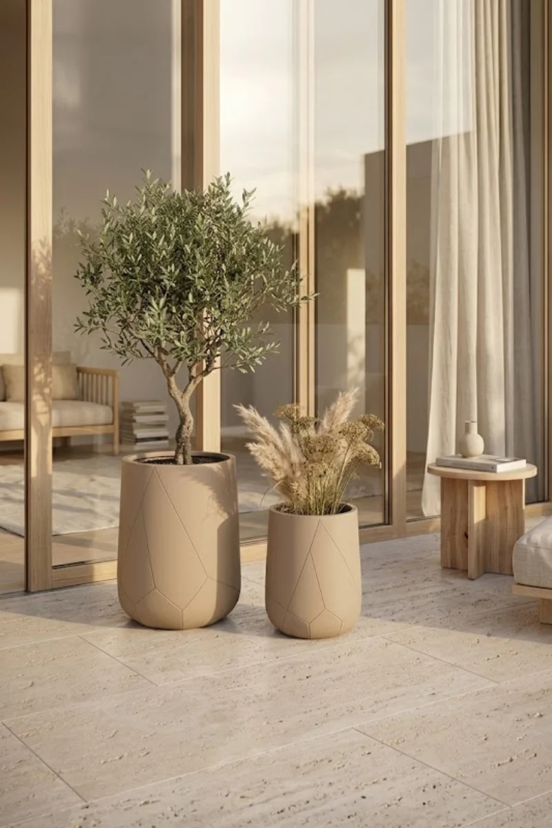 Spójność stylistyczna: Identyczny odcień ciepłego beżu oraz powtarzalna, geometryczna faktura gwarantują, że aranżacja będzie wyglądać profesjonalnie i spójnie, niezależnie od tego, czy postawisz je obok siebie, czy w różnych częściach salonu.