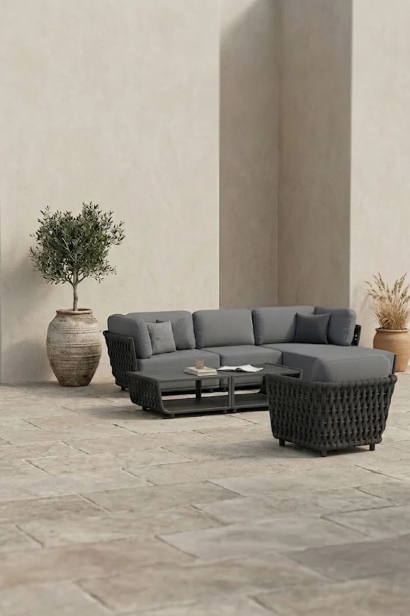 Zestaw Serano Lounge w eleganckim, szarym odcieniu to projekt, w którym nowoczesna estetyka premium spotyka się z kojącym wpływem natury. Inspiracja barwami ziemi i kamienia pozwoliła stworzyć meble, które wprowadzają do ogrodu harmonię i spokój, nie tracąc przy tym swojego wyrafinowanego, współczesnego charakteru. To idealna propozycja dla koneserów stylów nowoczesnego, boho oraz naturalnego, gdzie każdy detal ma znaczenie.
