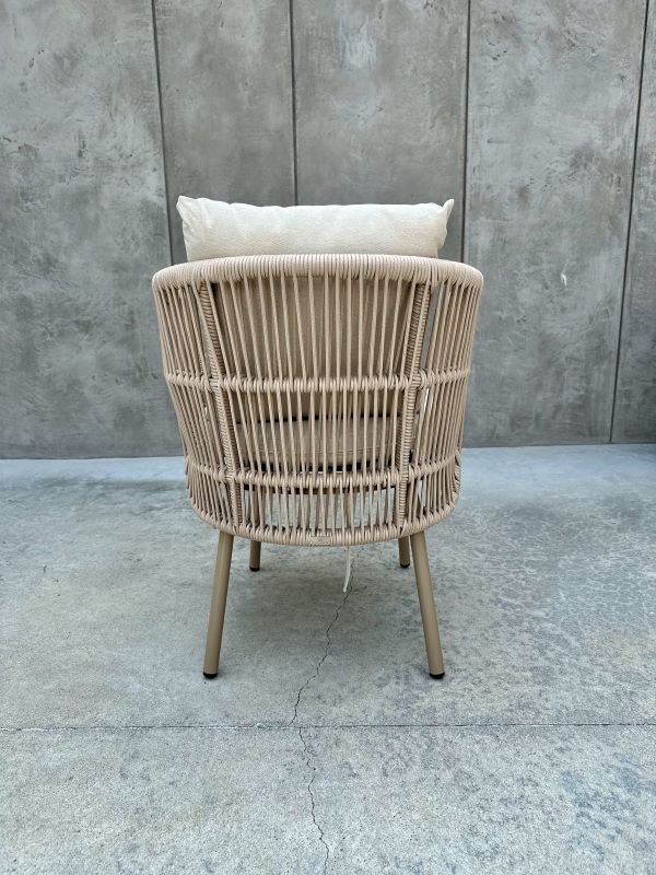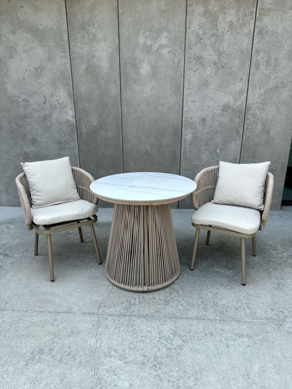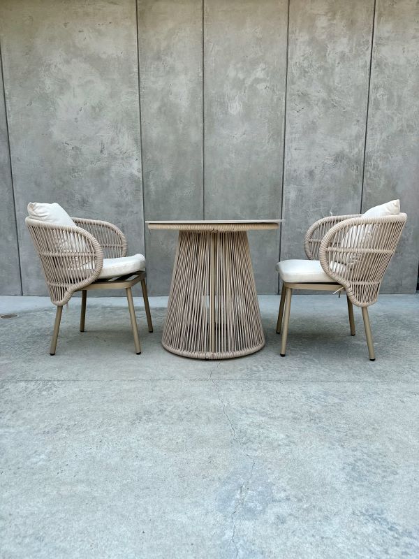 Techniczny oplot sznurkowy: Fotele oraz podstawa stolika zostały wykończone wytrzymałym sznurkiem, który nie blaknie i nie odkształca się pod wpływem temperatury czy wilgoci.