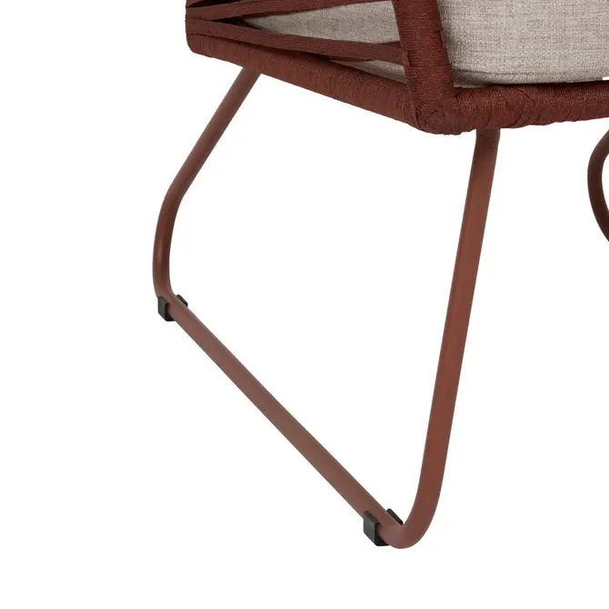 Zestaw BELANO przyciąga wzrok zaokrąglonymi liniami i unikalnym wykończeniem oparć, które zdobi pleciony sznur. Ta artystyczna tekstura nadaje meblom lekkości, a eleganckie nogi wyposażone w antypoślizgowe podkładki gwarantują stabilność. W skład kompletu wchodzą: